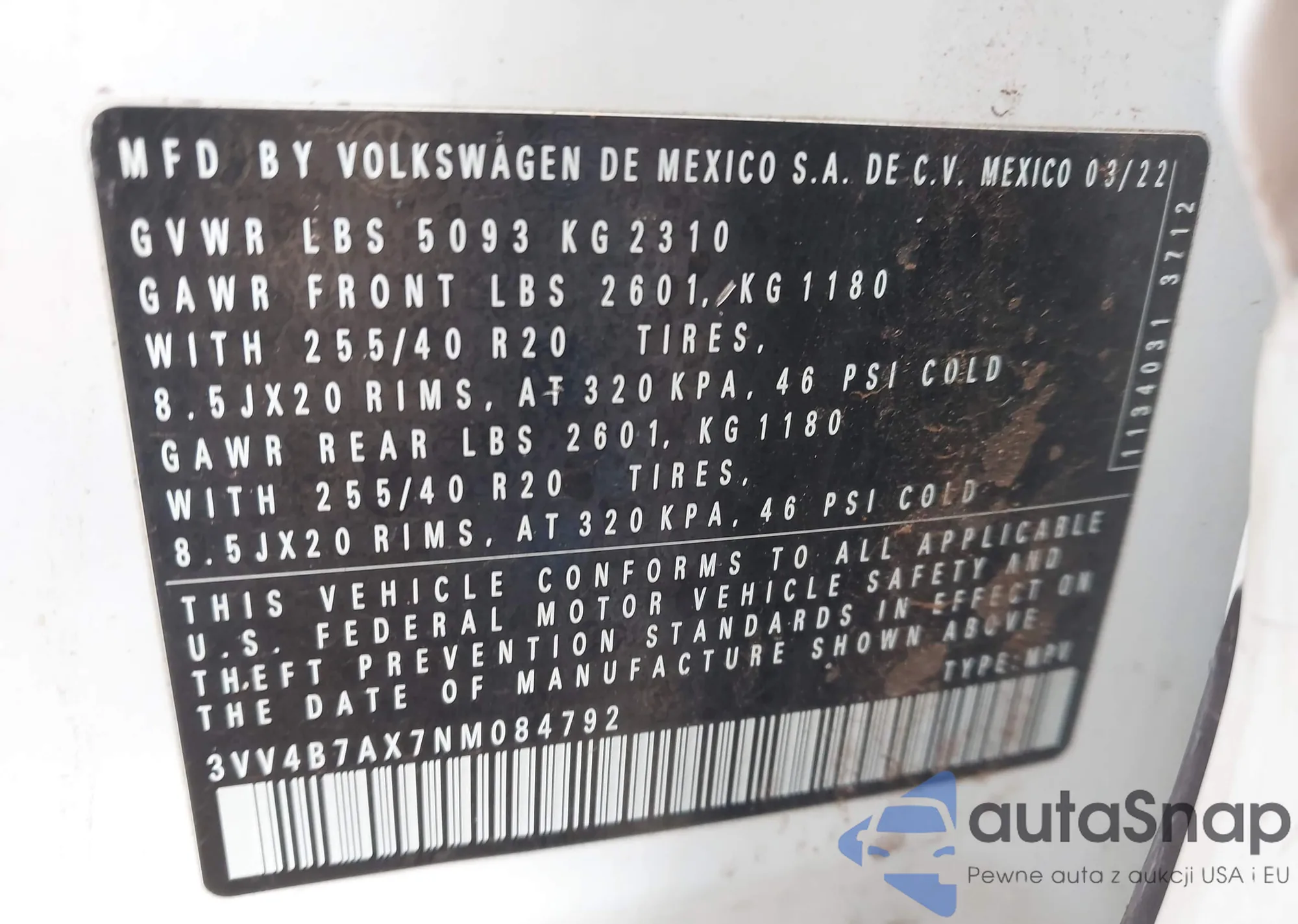 • VIN 3VV4B7AX7NM084792