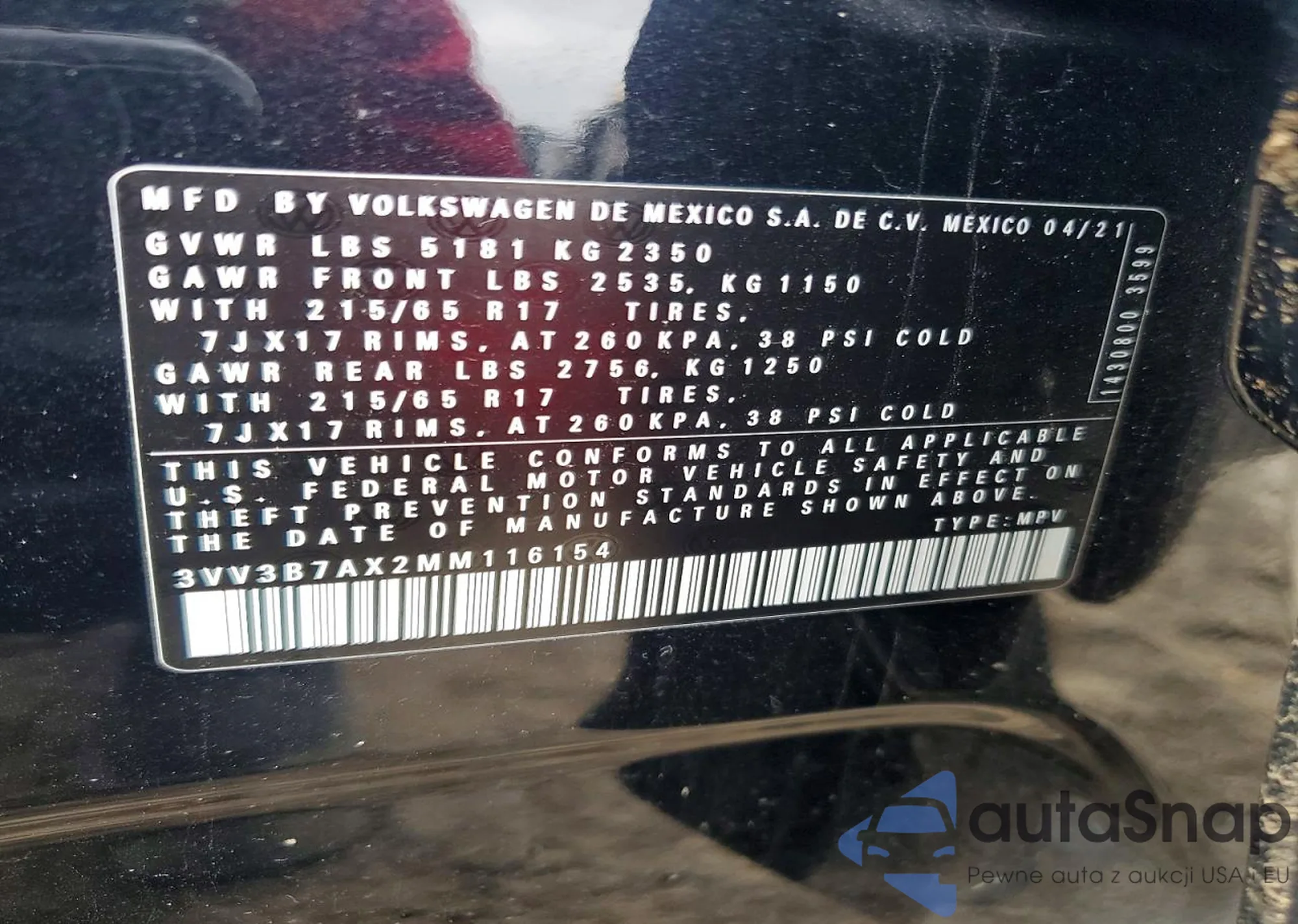 • VIN 3VV3B7AX2MM116154