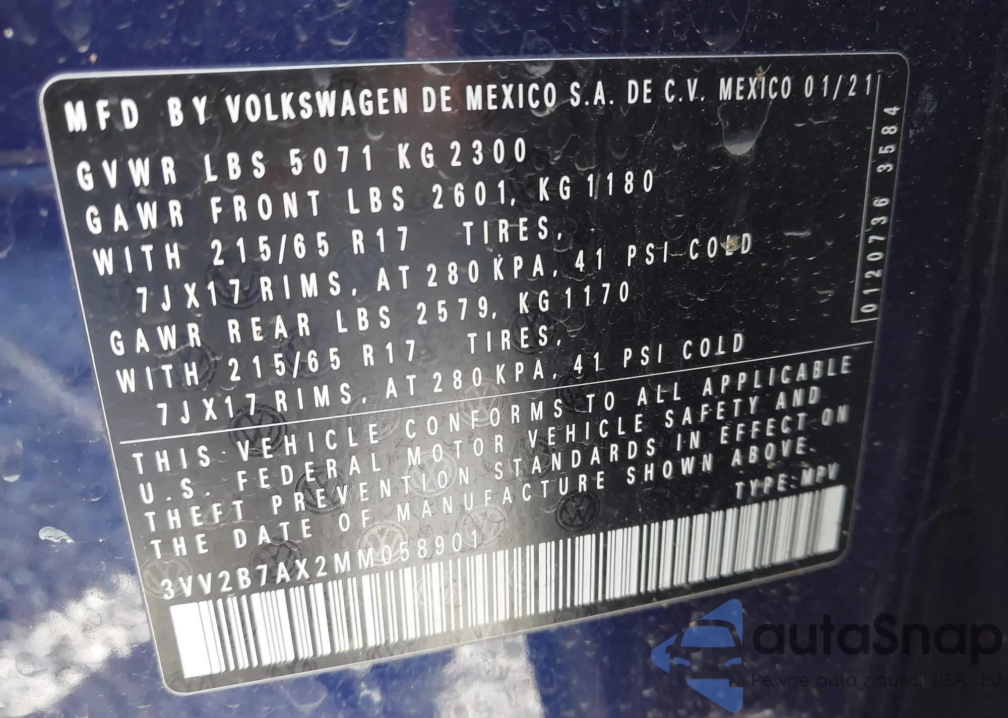 • VIN 3VV2B7AX2MM058901