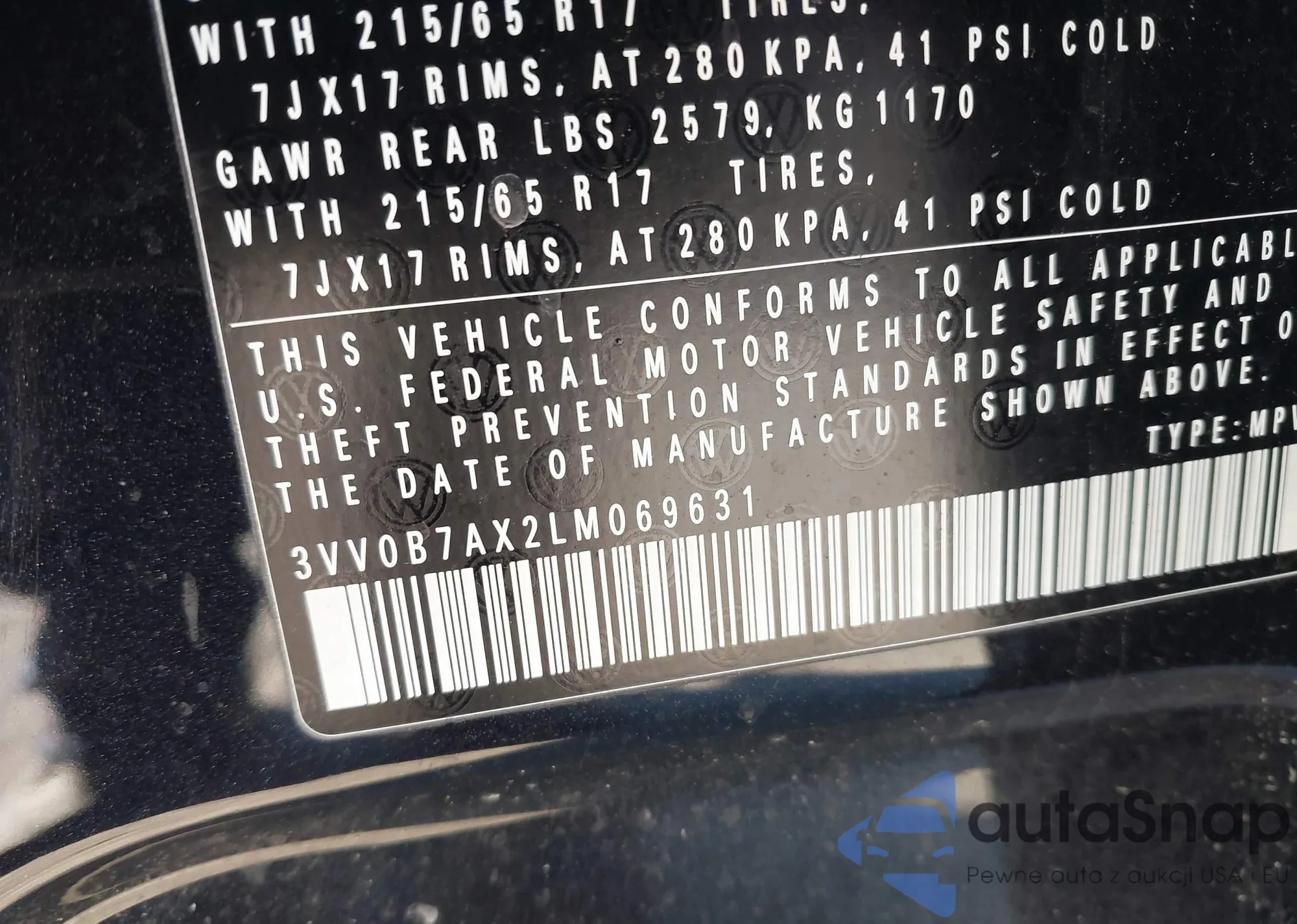 • VIN 3VV0B7AX2LM069631
