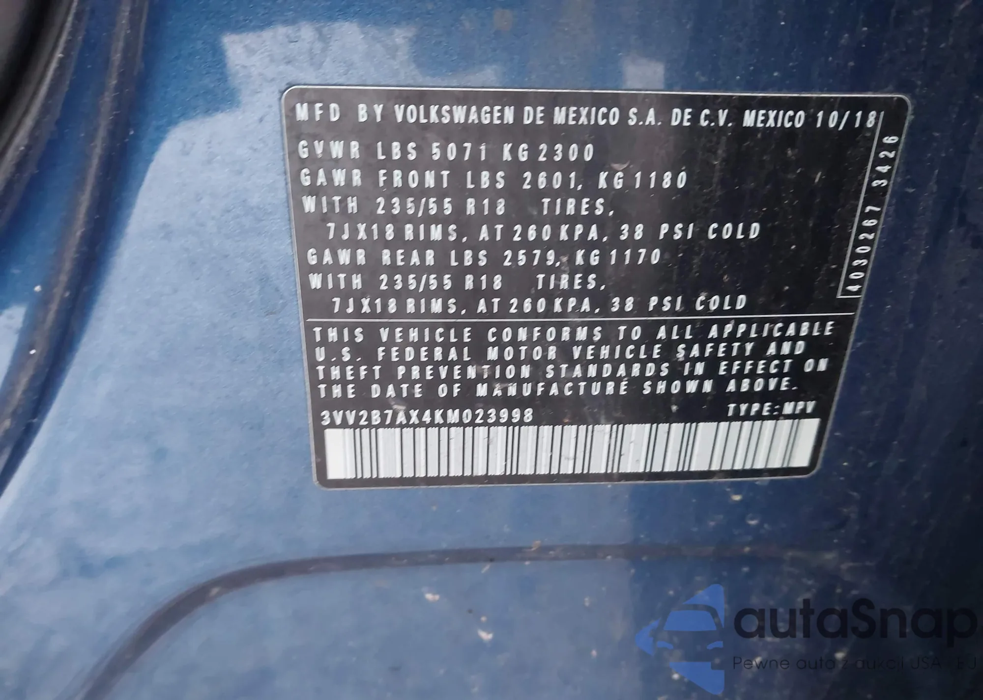 • VIN 3VV2B7AX4KM023998