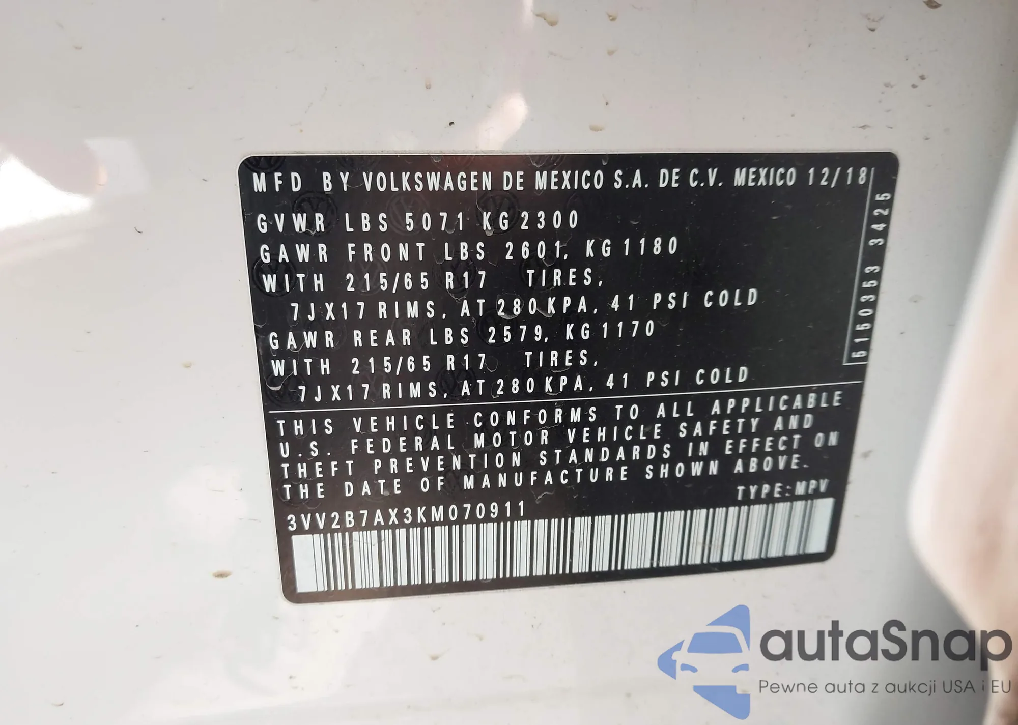 • VIN 3VV2B7AX3KM070911