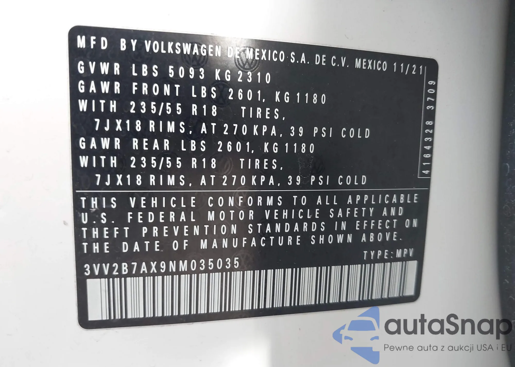 • VIN 3VV2B7AX9NM035035