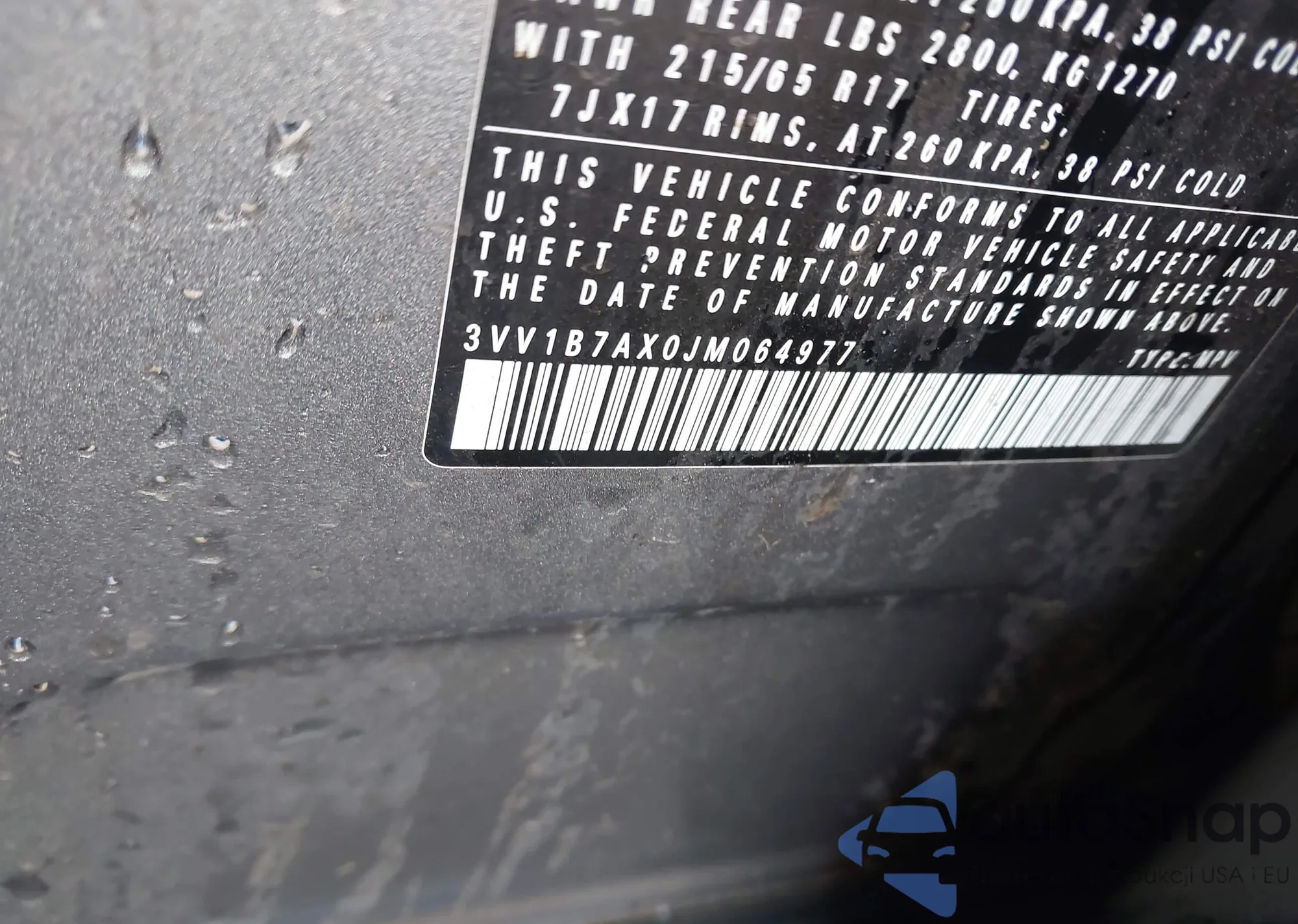 • VIN 3VV1B7AX0JM064977