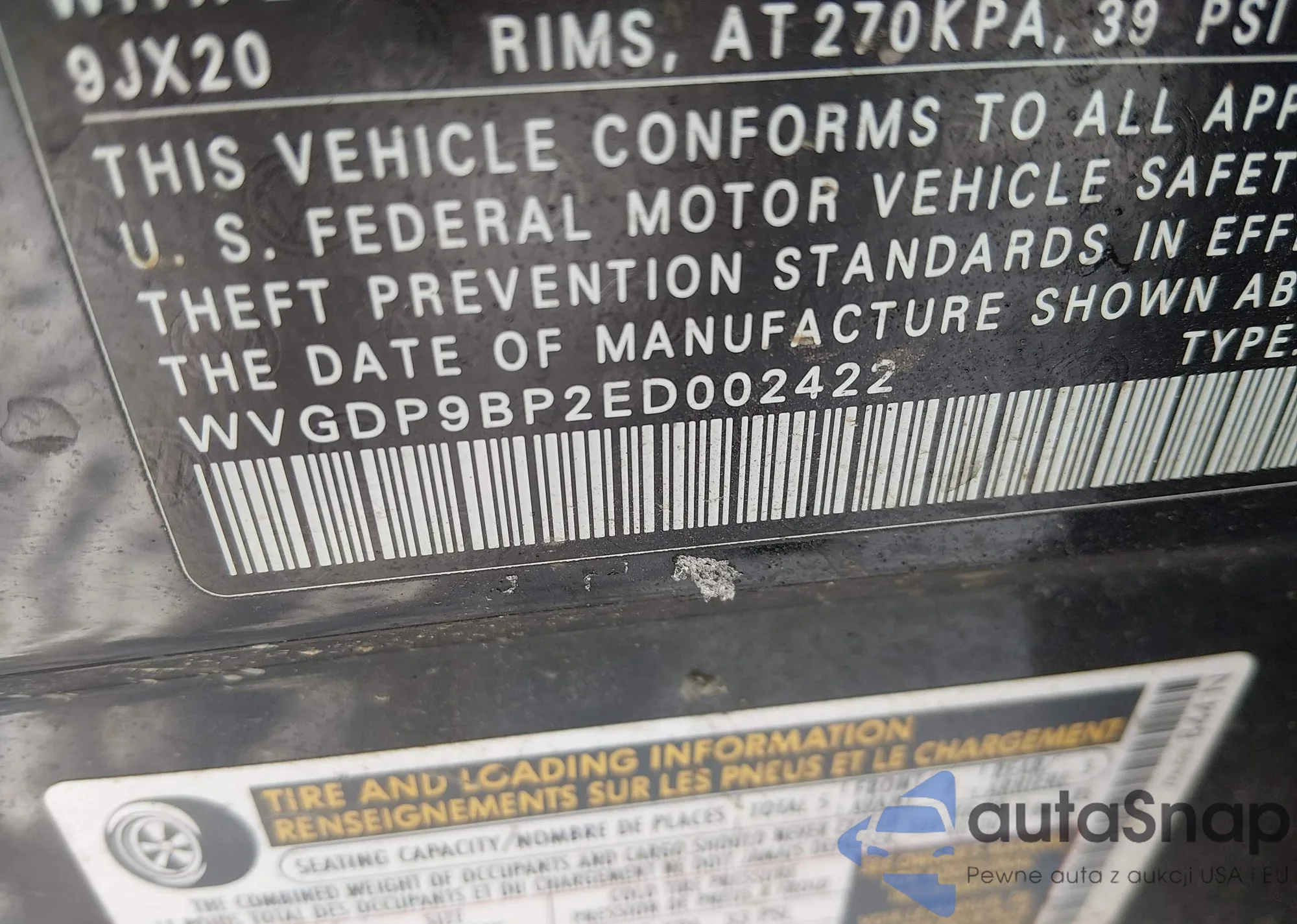 • VIN WVGDP9BP2ED002422