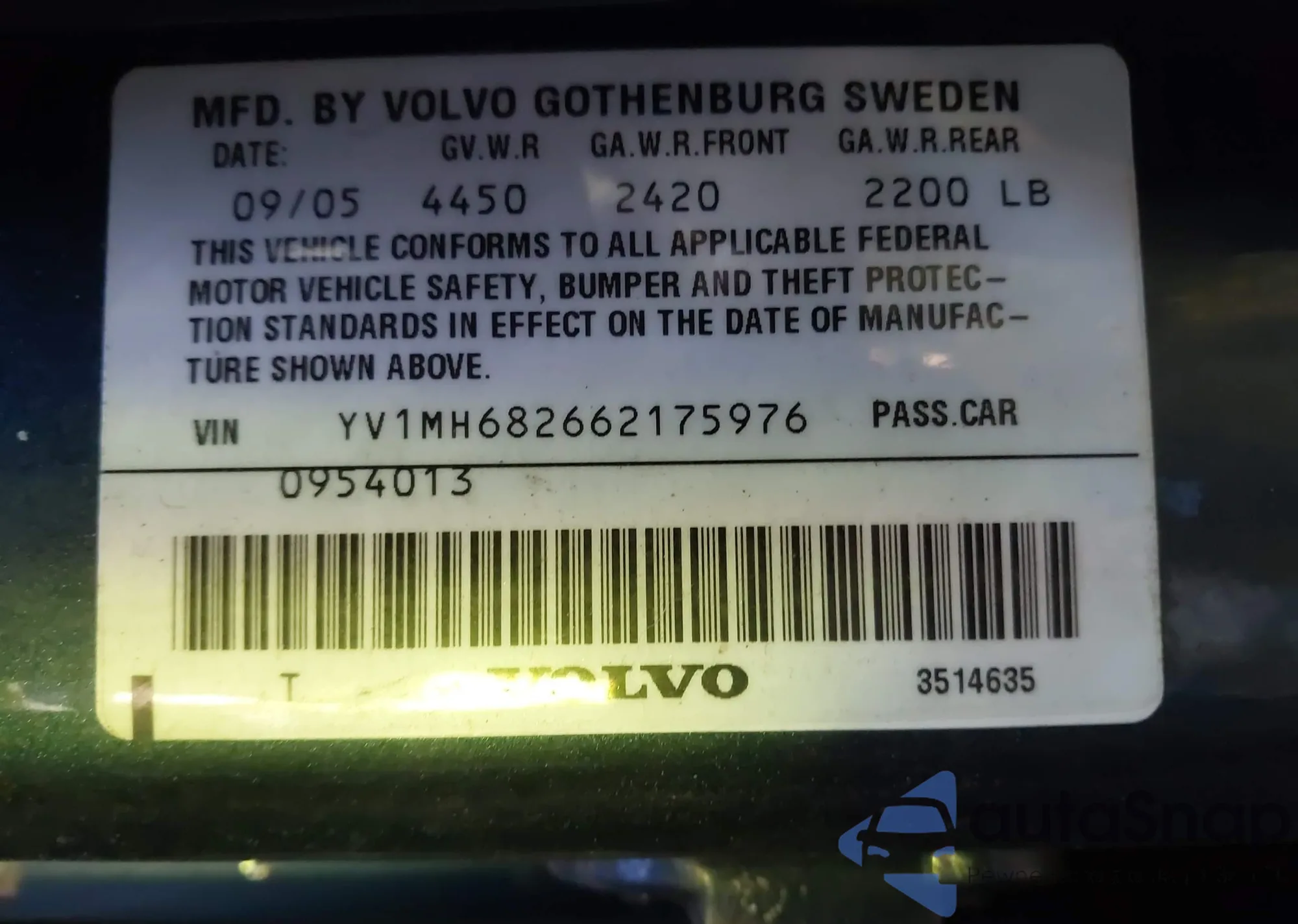 LOT: 73106635 VIN: YV1MS682562187506