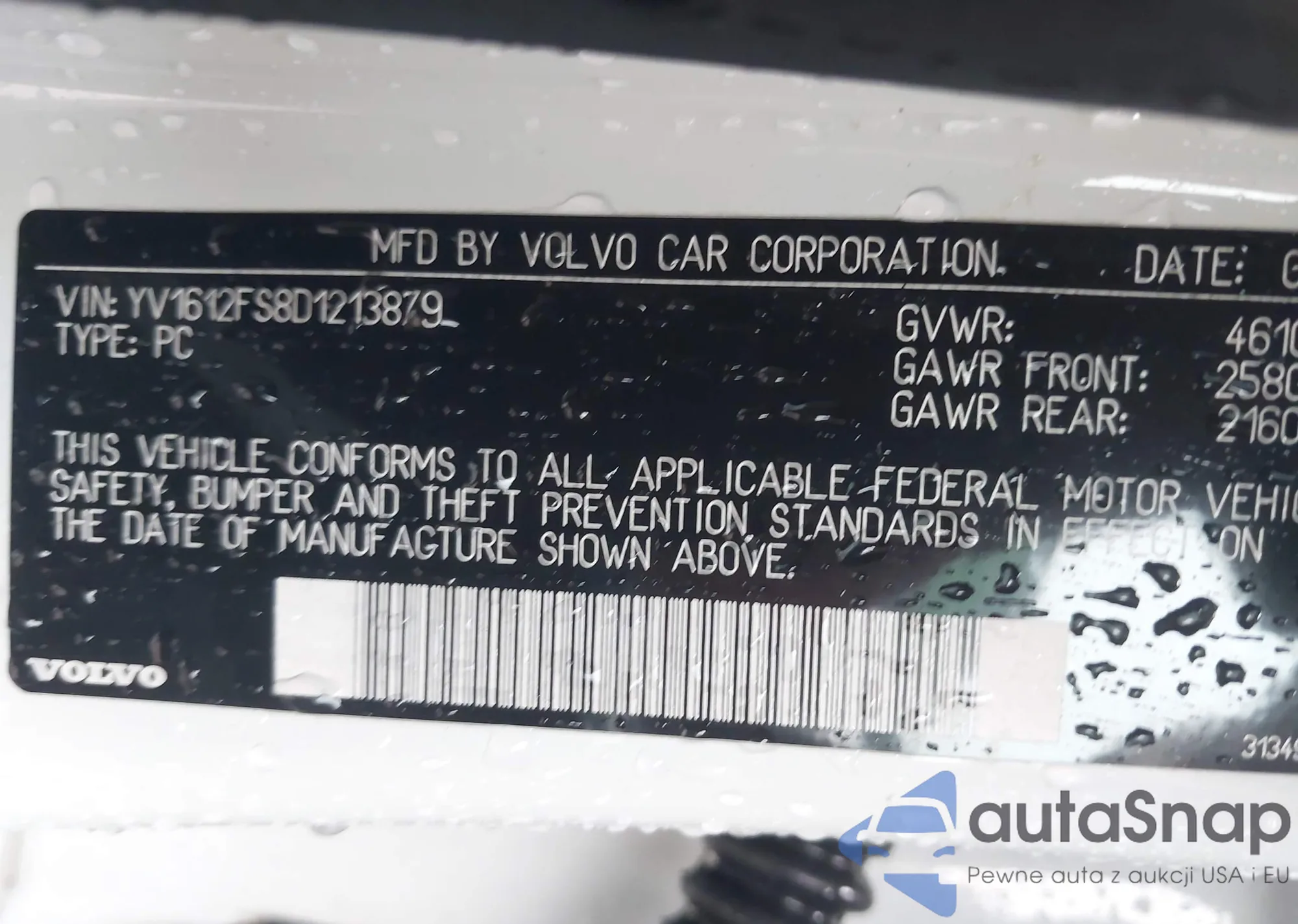 • VIN YV1612FS8D1213879