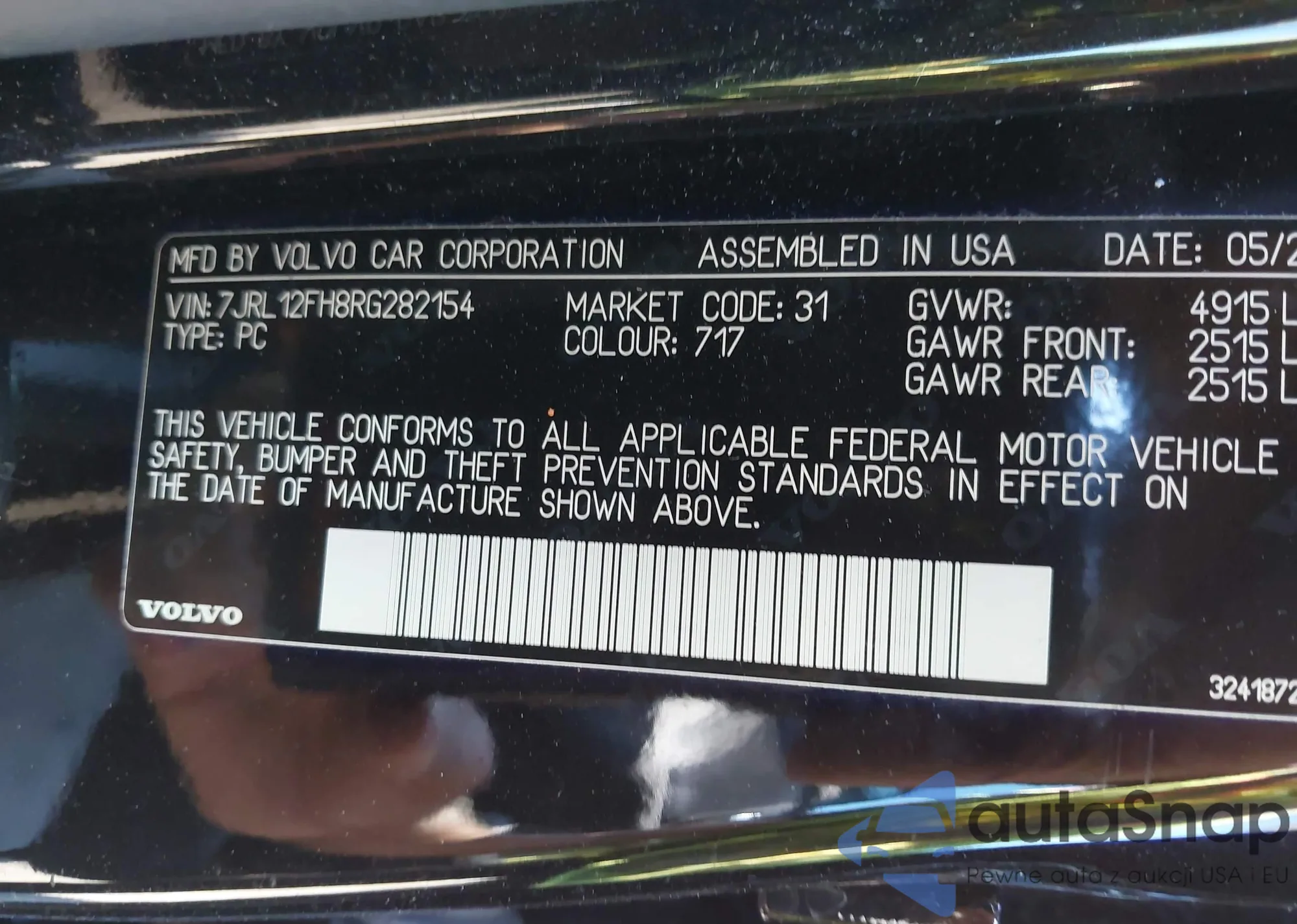 LOT: 43162134 VIN: YV1902FH8B2006453