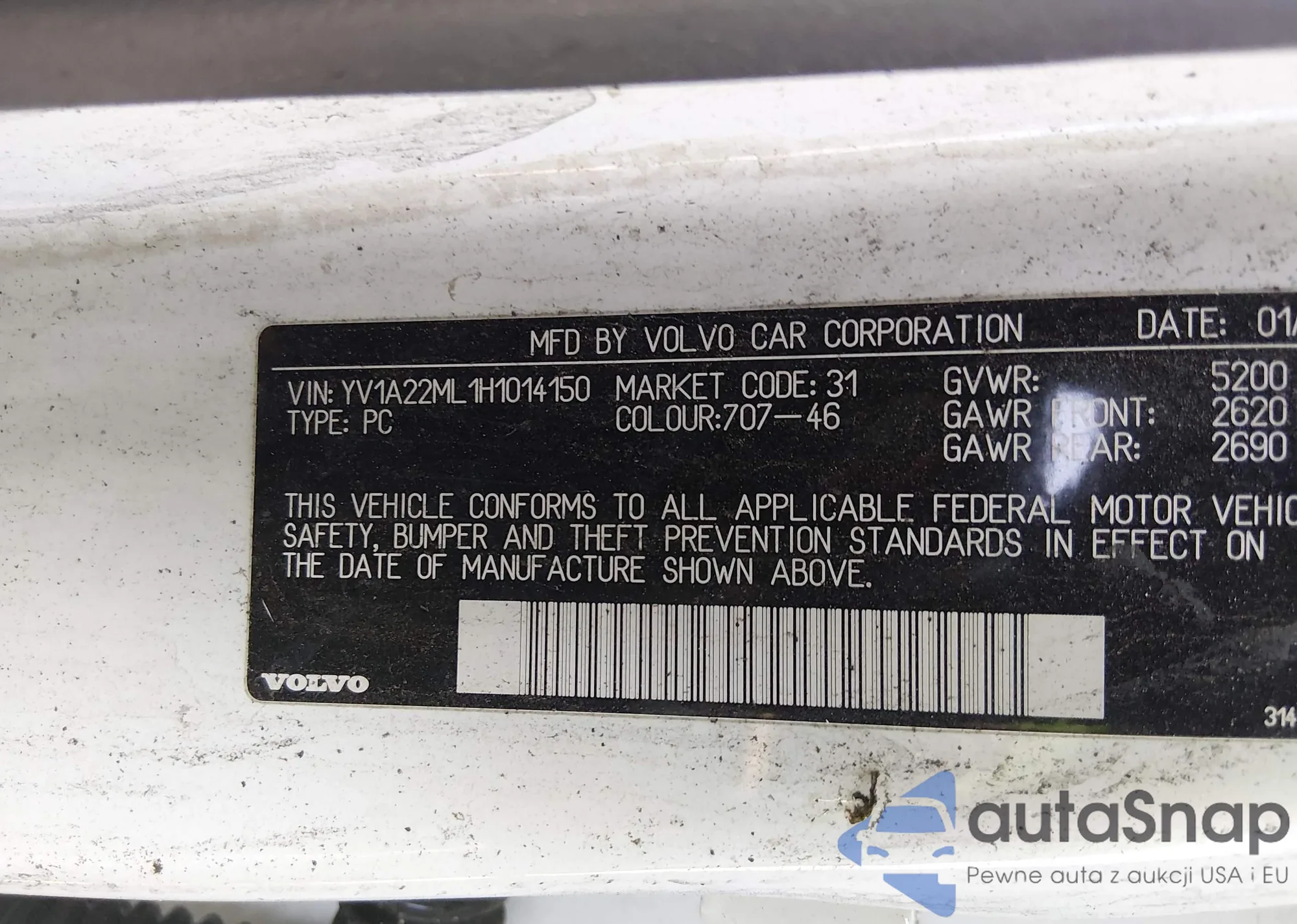 • VIN YV1A22ML1H1014150