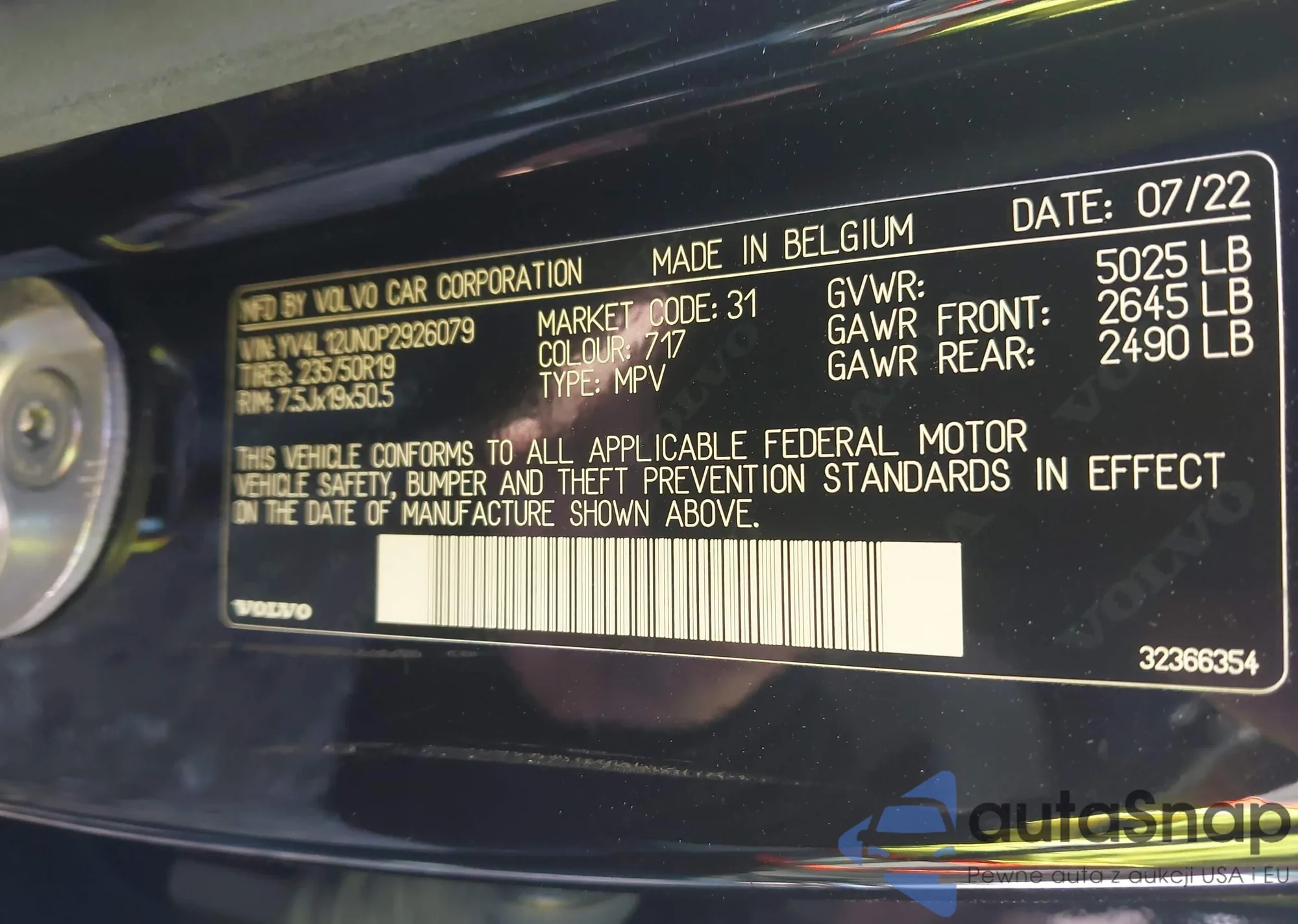 • VIN YV4L12UXXP2075913