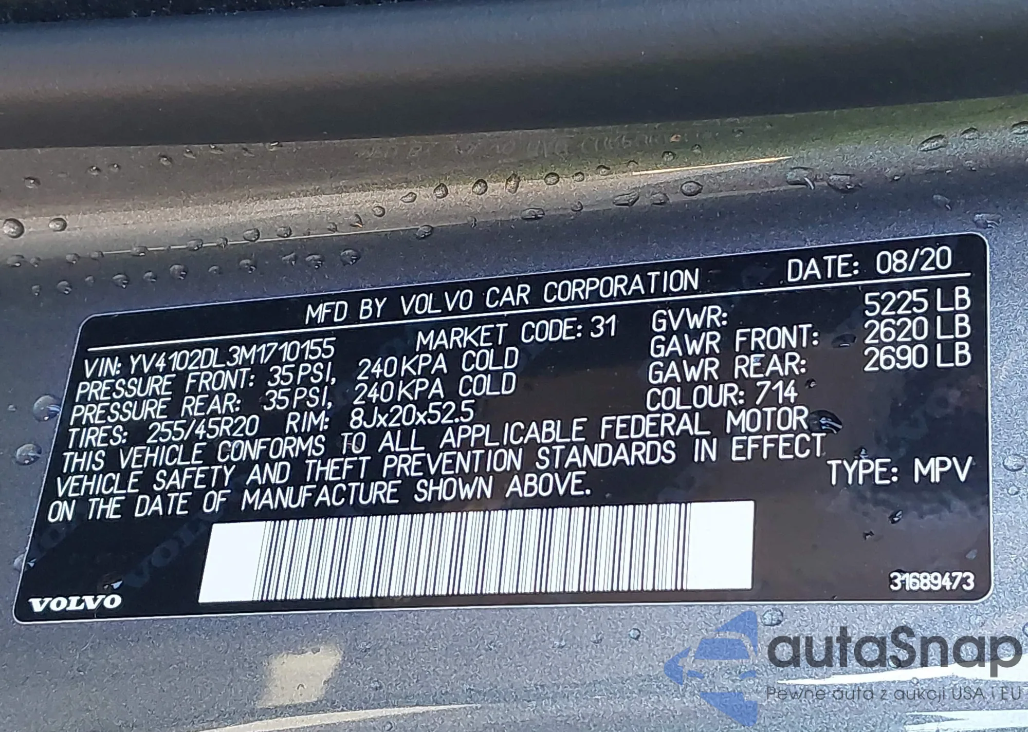 • VIN YV4BR0DK4M1685479