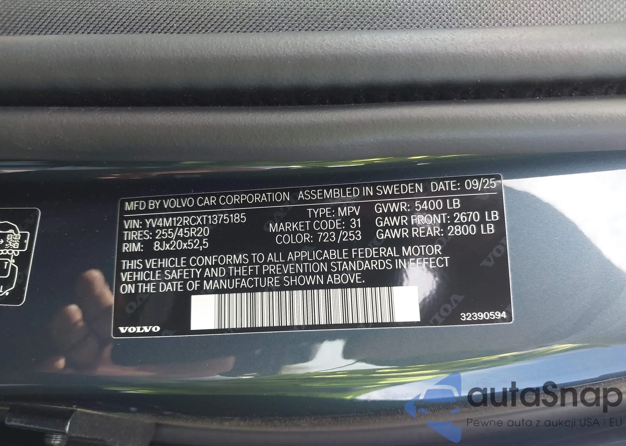 • VIN YV4M12RCXT1375185