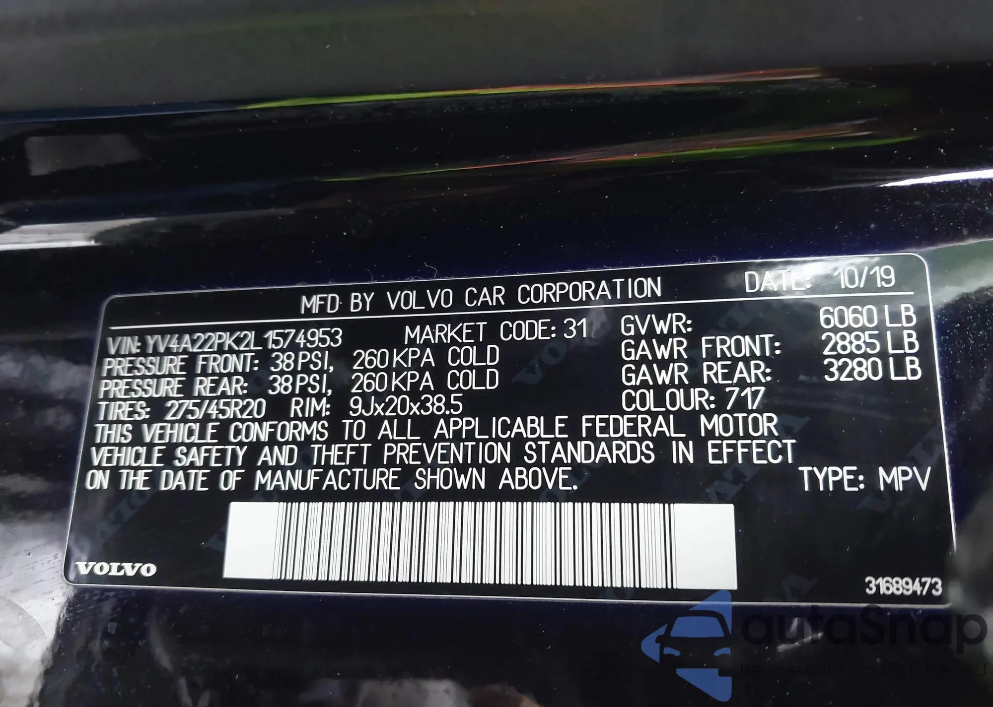 LOT: 43873868 VIN: YV4A22PK2L1574953