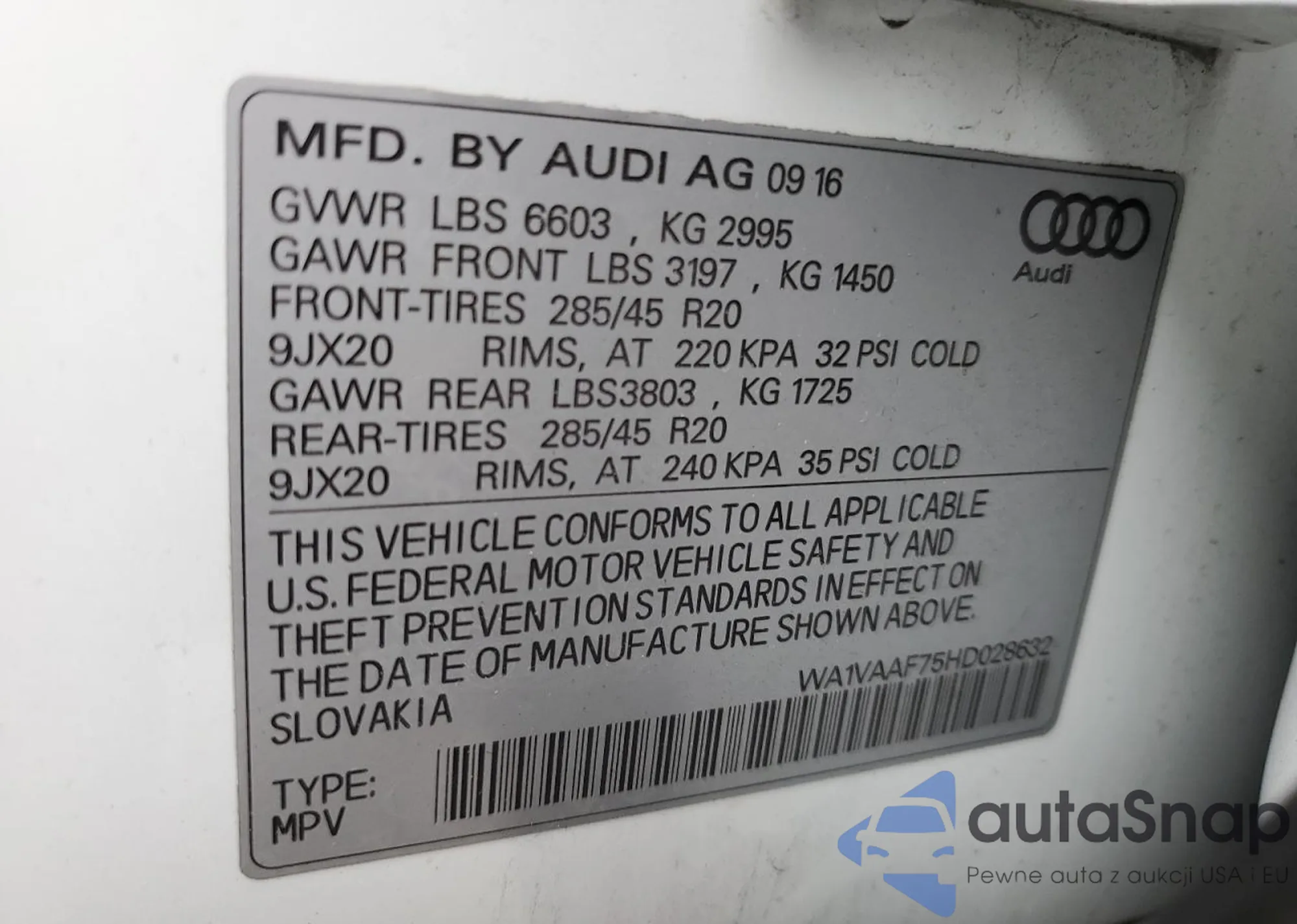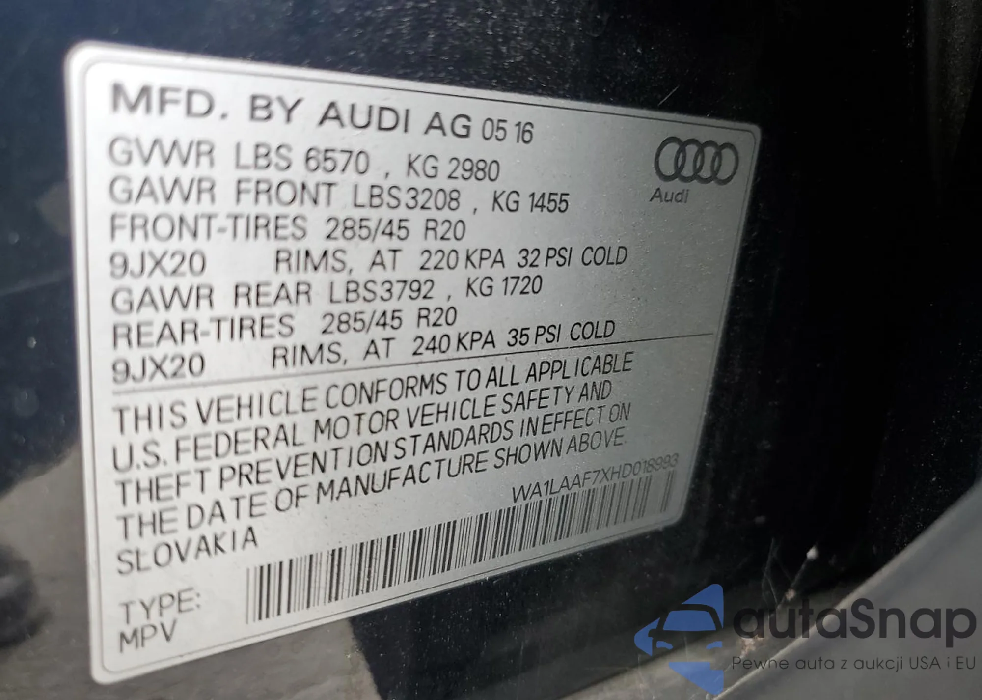VIN: WA1LAAF7XHD018993