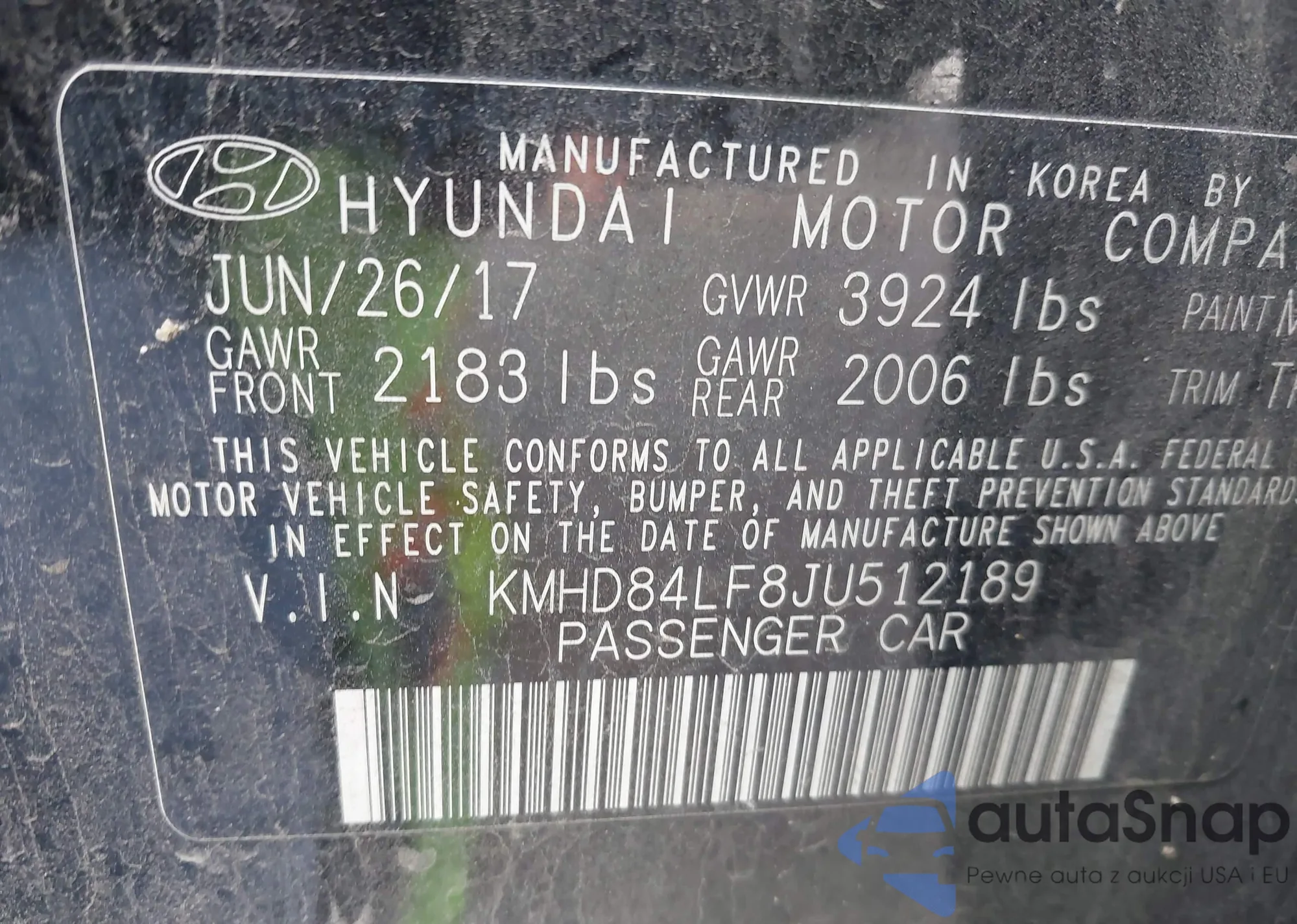 • VIN KMHD84LF8JU512189