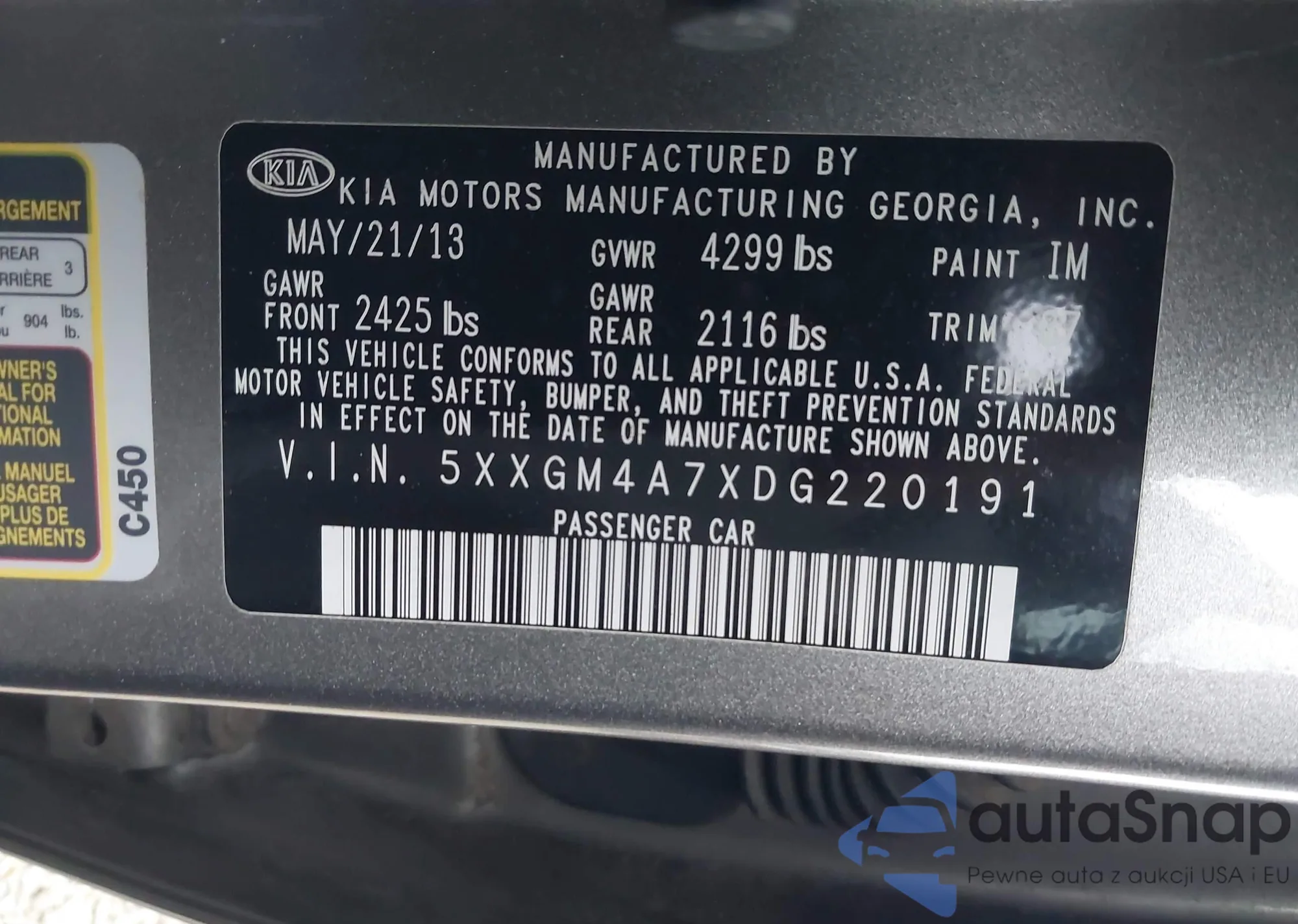 • VIN 5XXGM4A7XDG220191