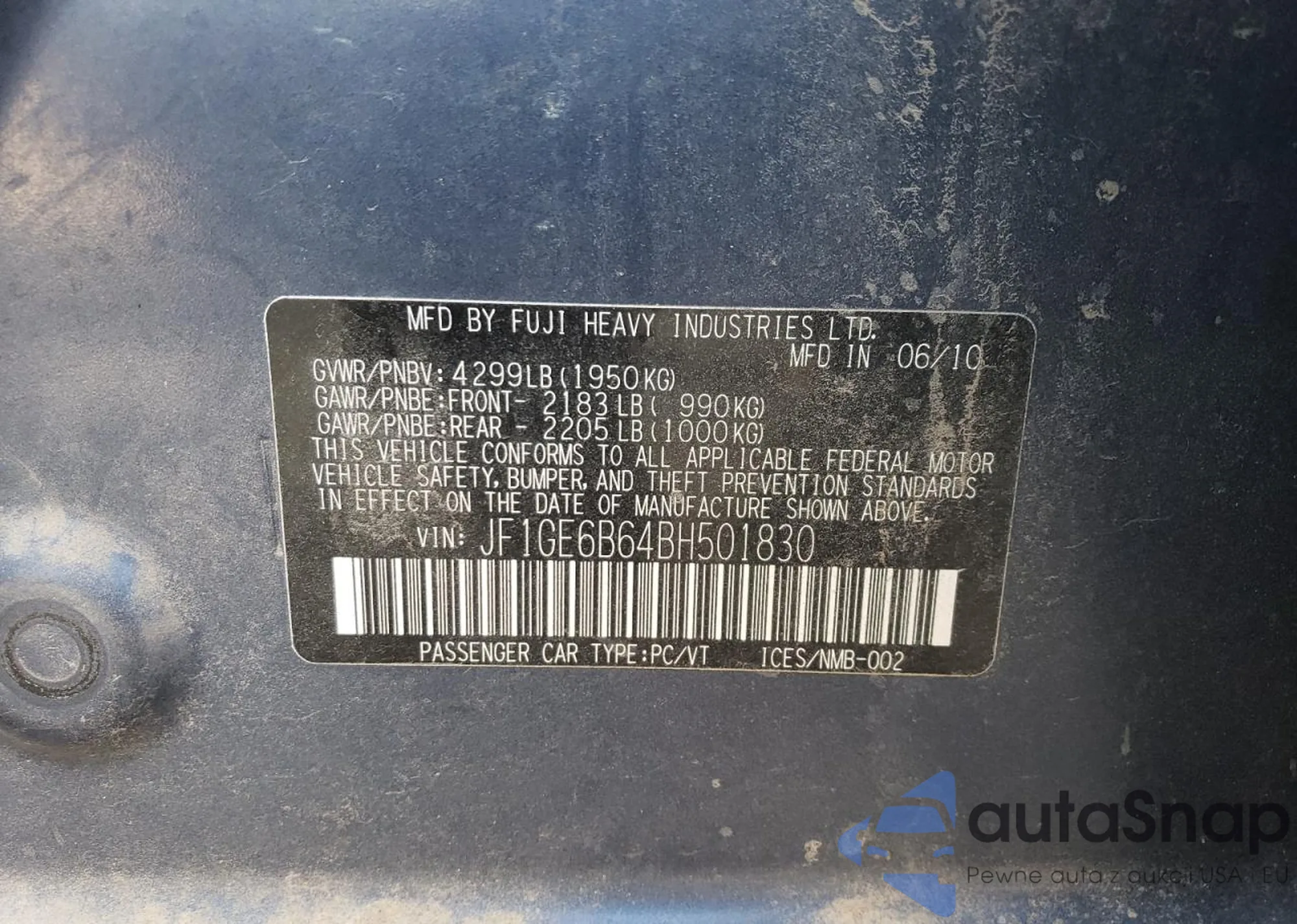 • VIN WAURGAFD6DN010072