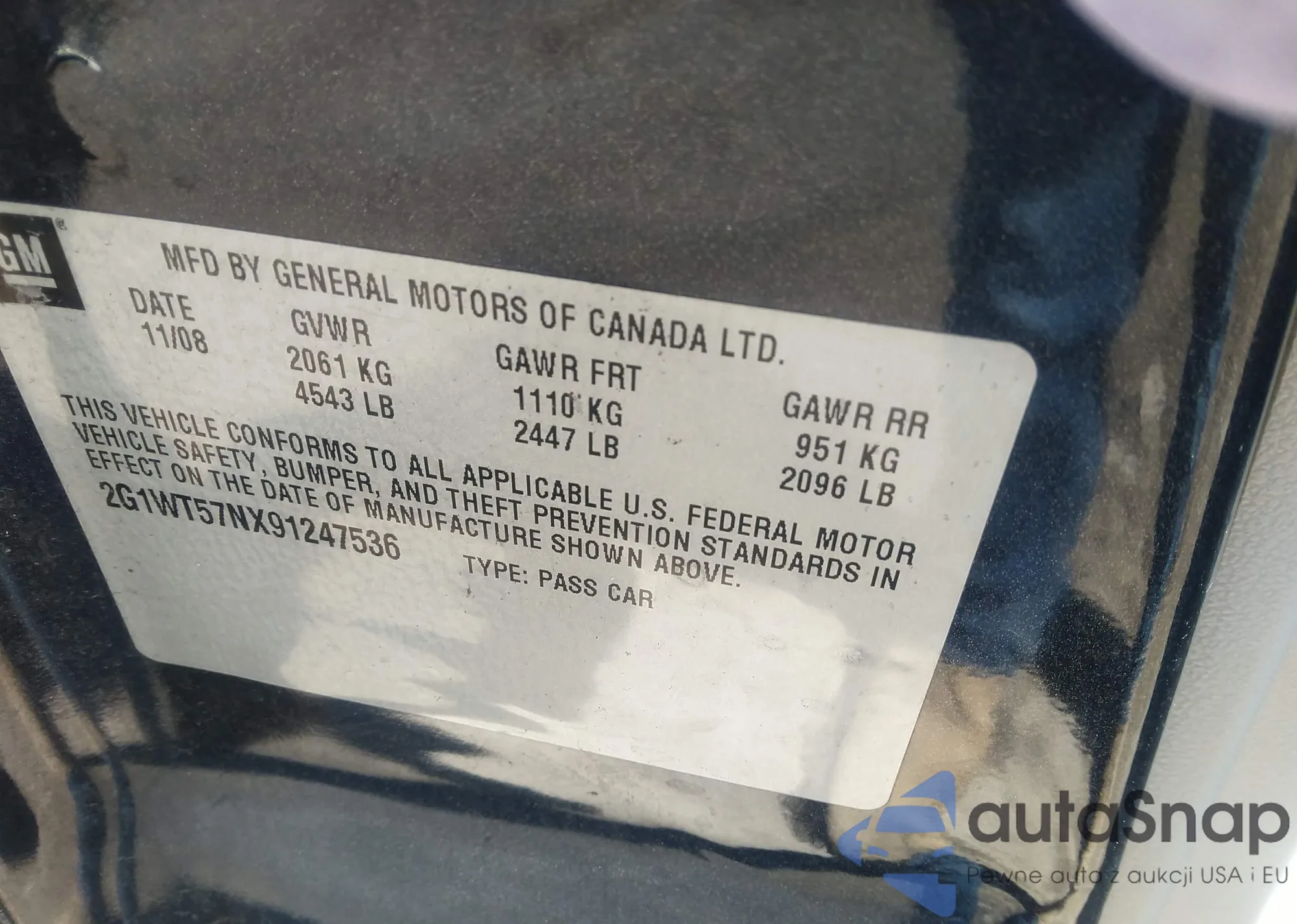• VIN 2G1WT57NX91247536