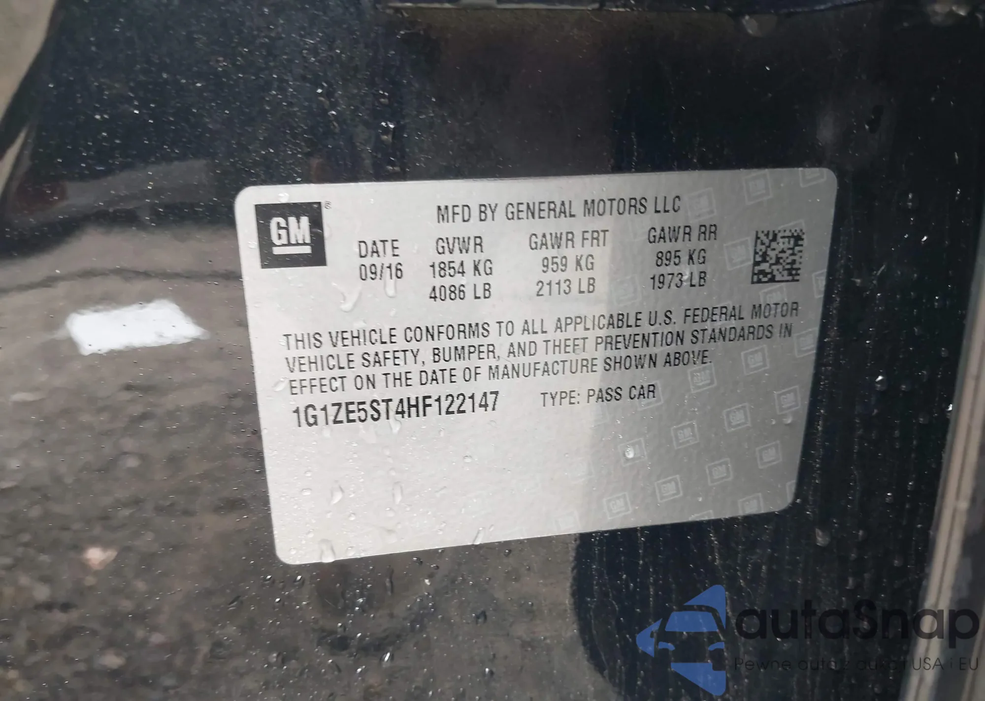 • VIN 1G1ZE5ST4HF122147
