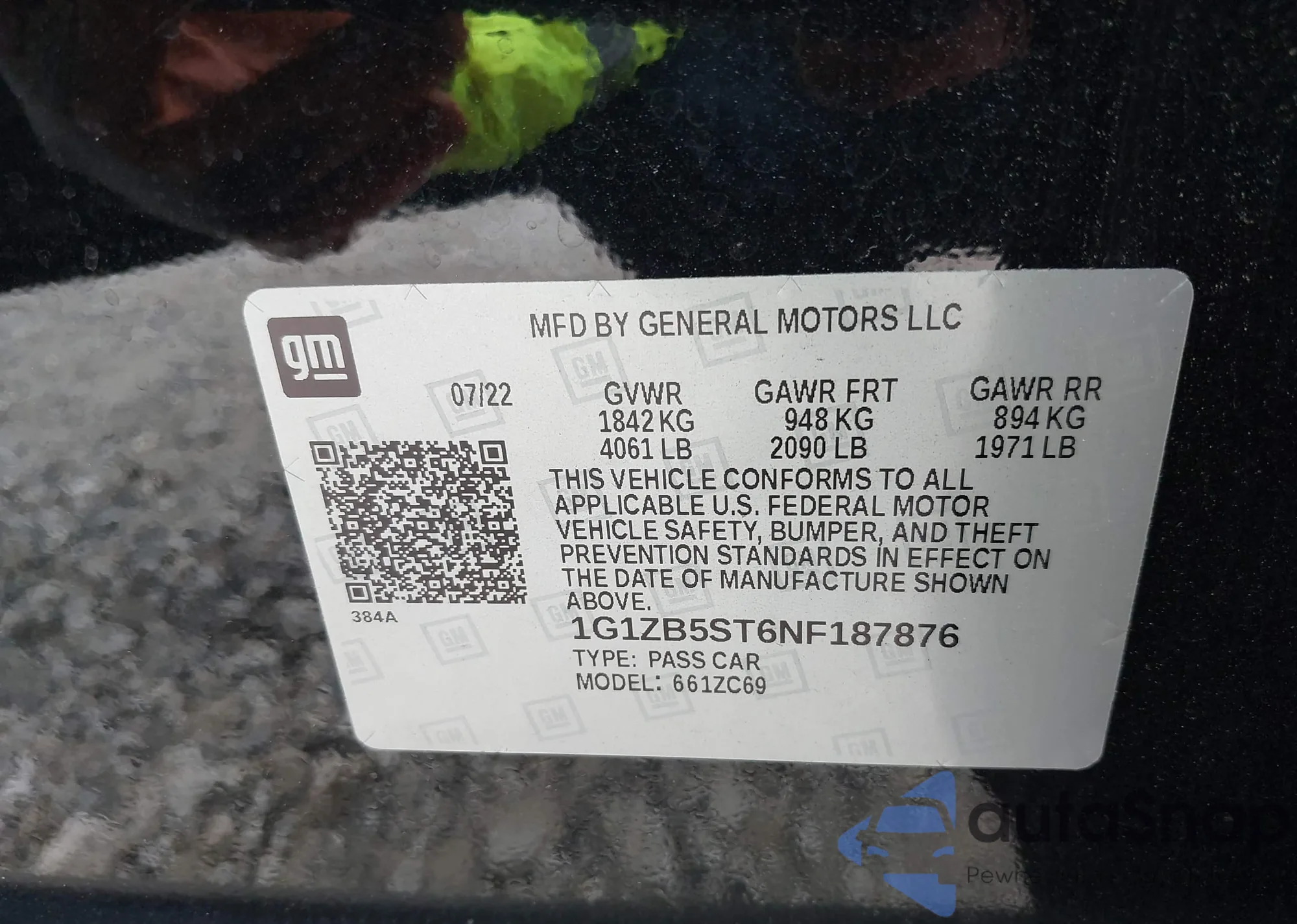 • VIN 1G1ZB5ST6NF187876