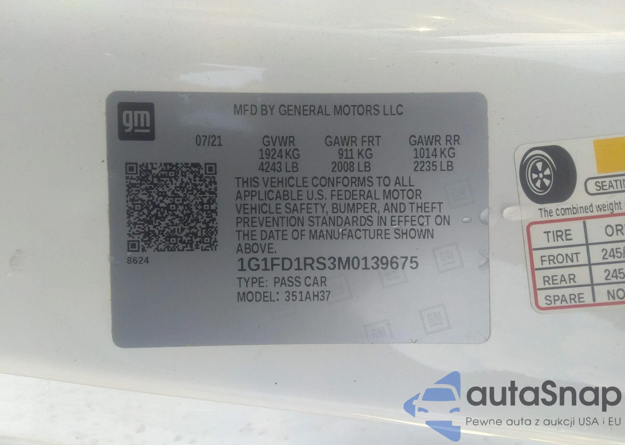 LOT: 40502998 VIN: 1G1FD1RS3M0139675