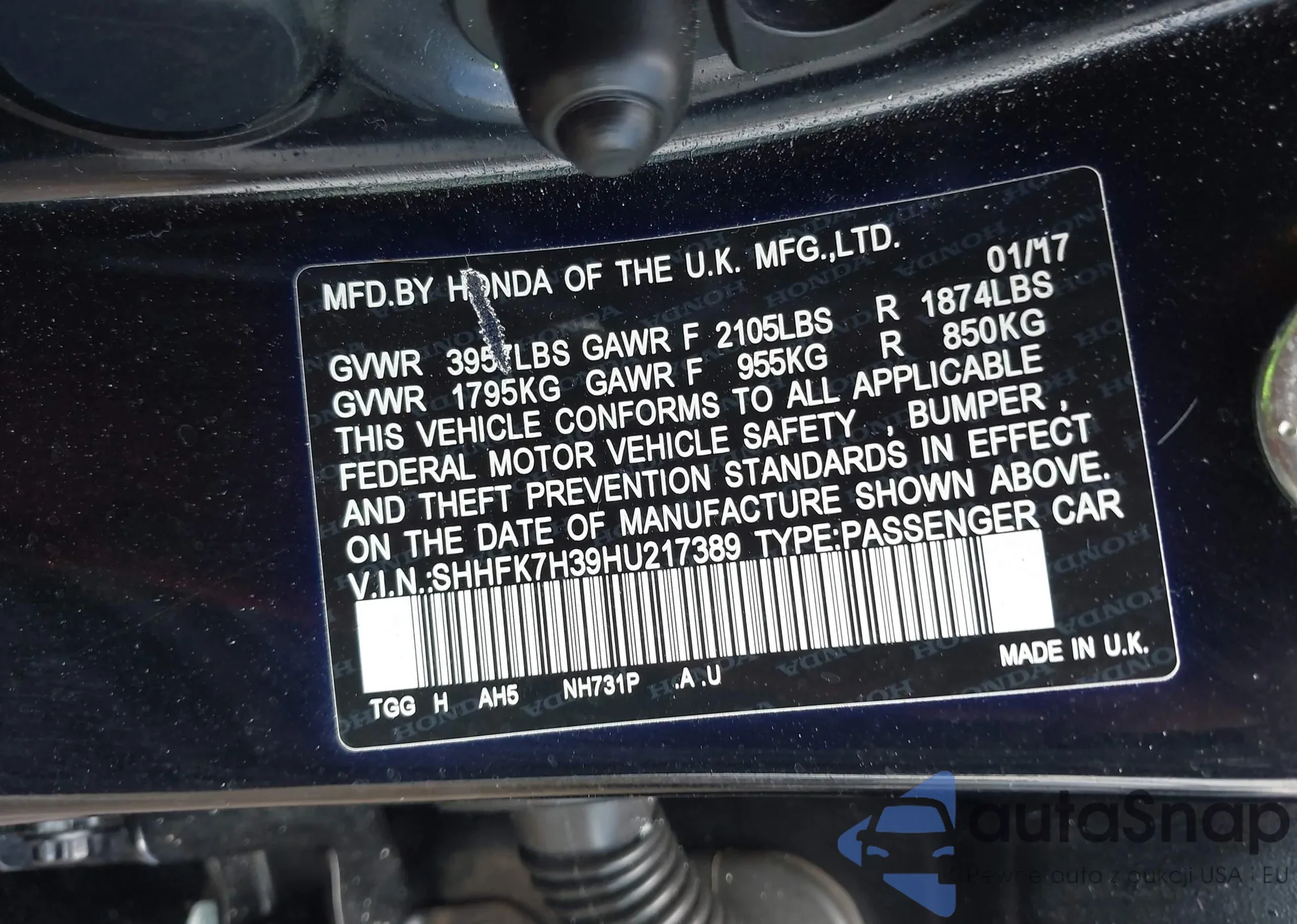 • VIN SHHFK7H39HU217389