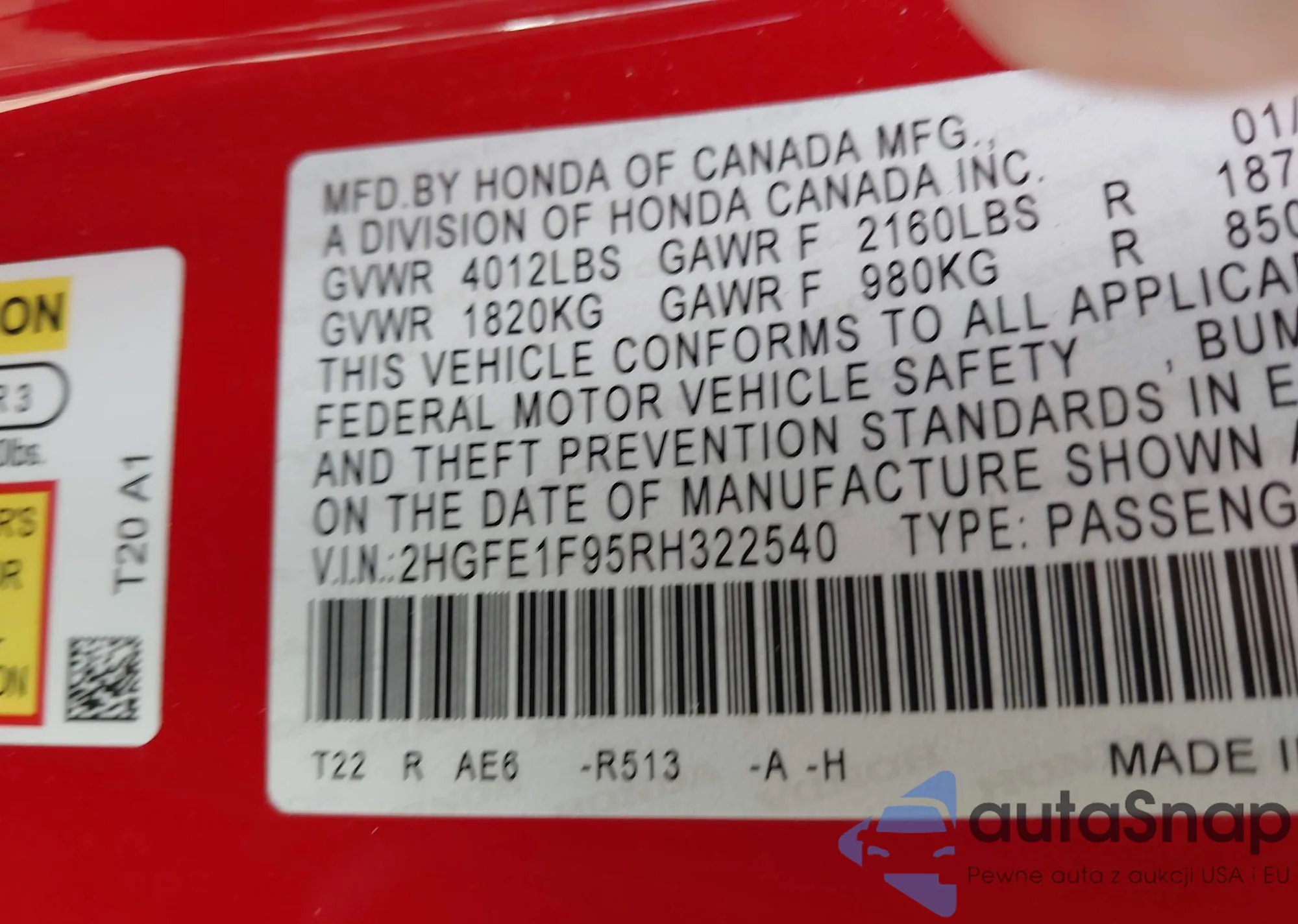• VIN 2HGFE2F54RH580387