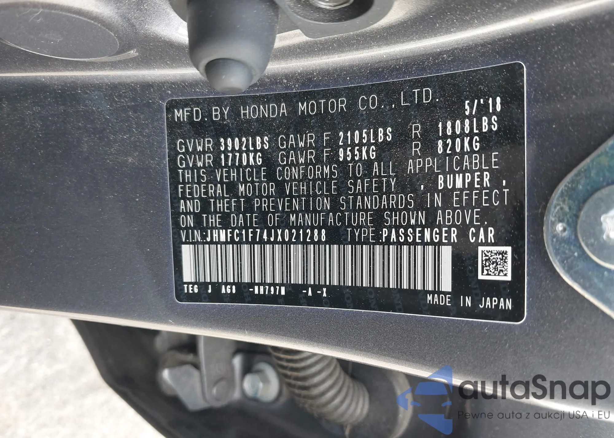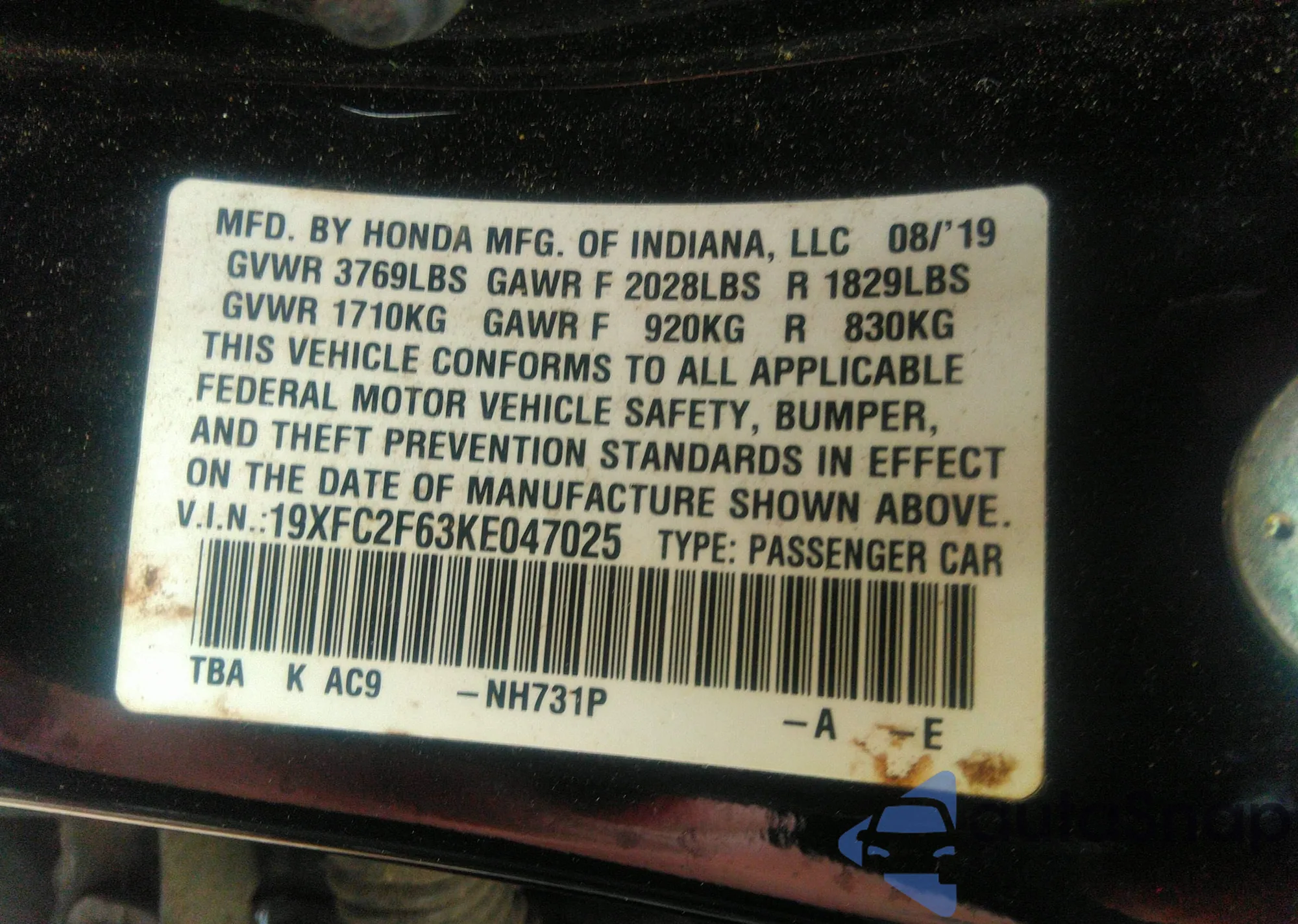 • VIN SHHFK7H38KU228116
