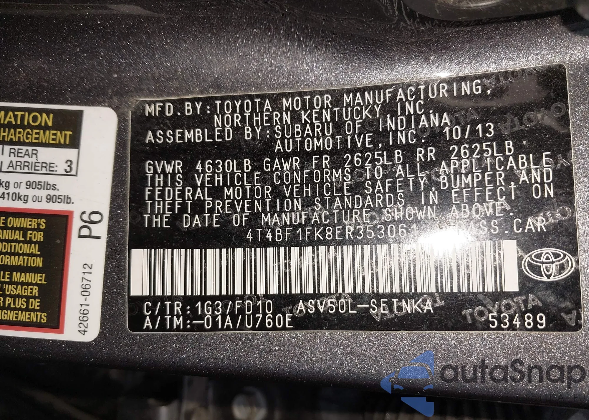 • VIN 4T4BF1FK8ER353061