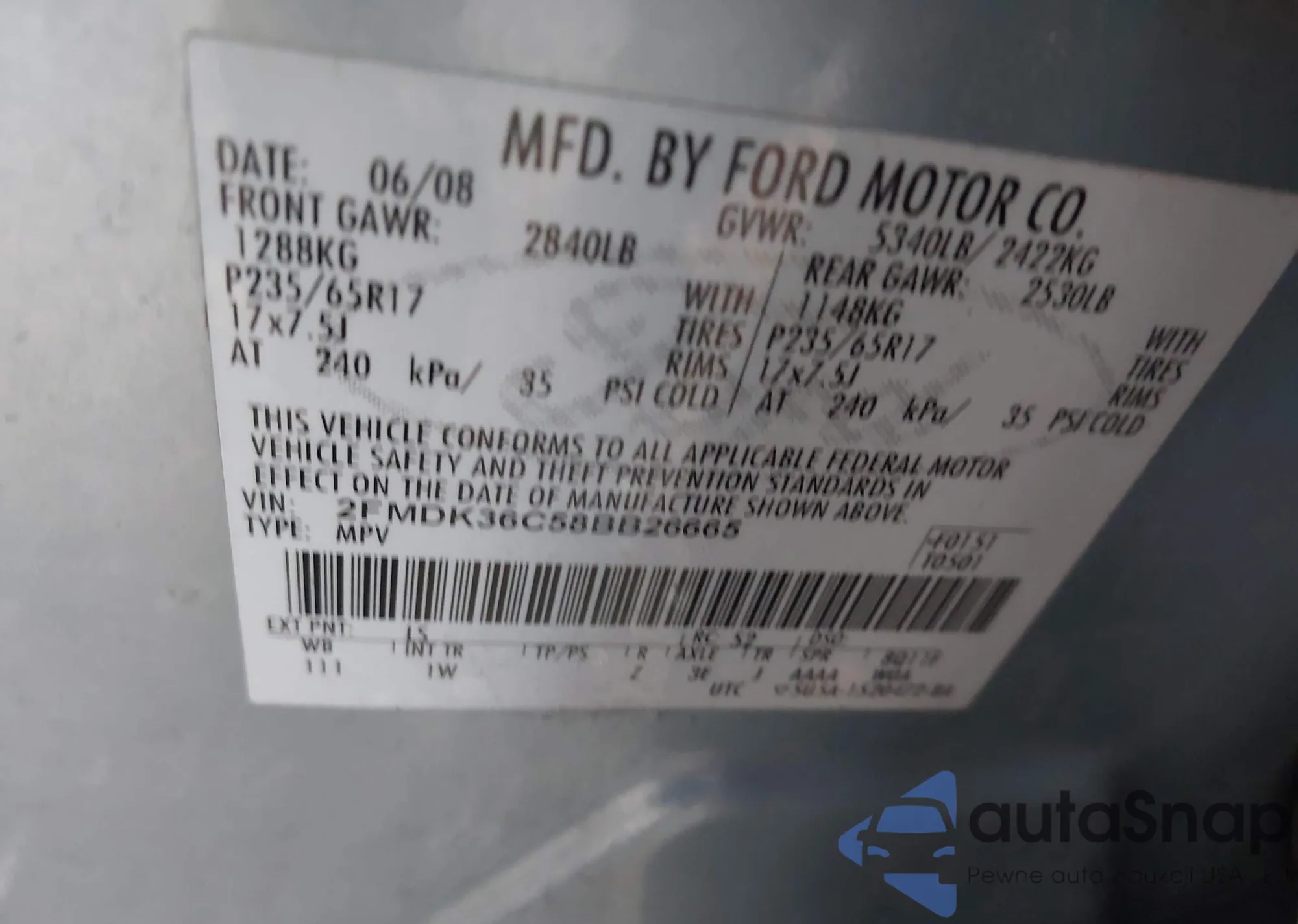LOT: 41303204 VIN: 2FMDK36C58BB26665