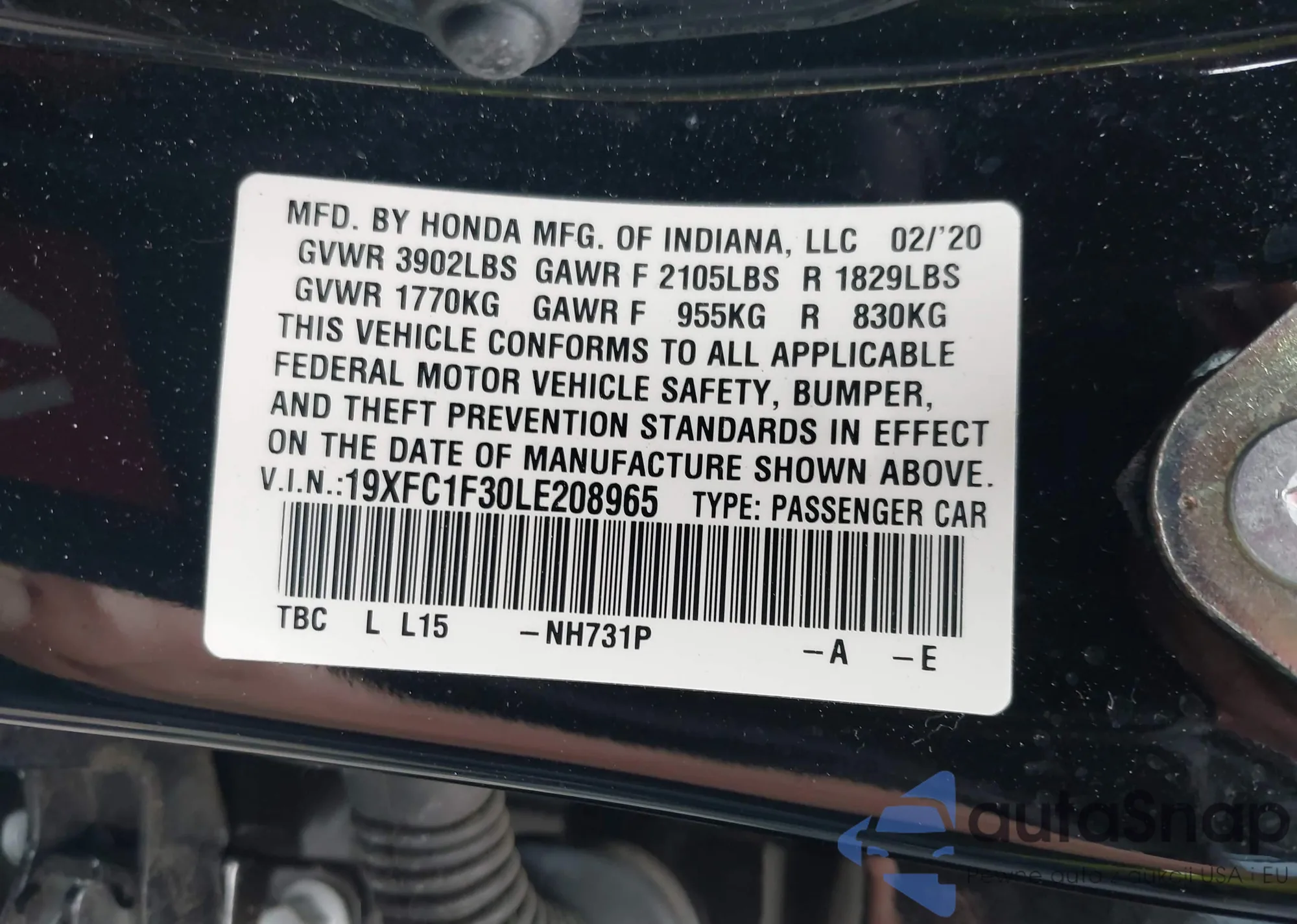 LOT: 40950204 VIN: 19XFC2F52JE023451