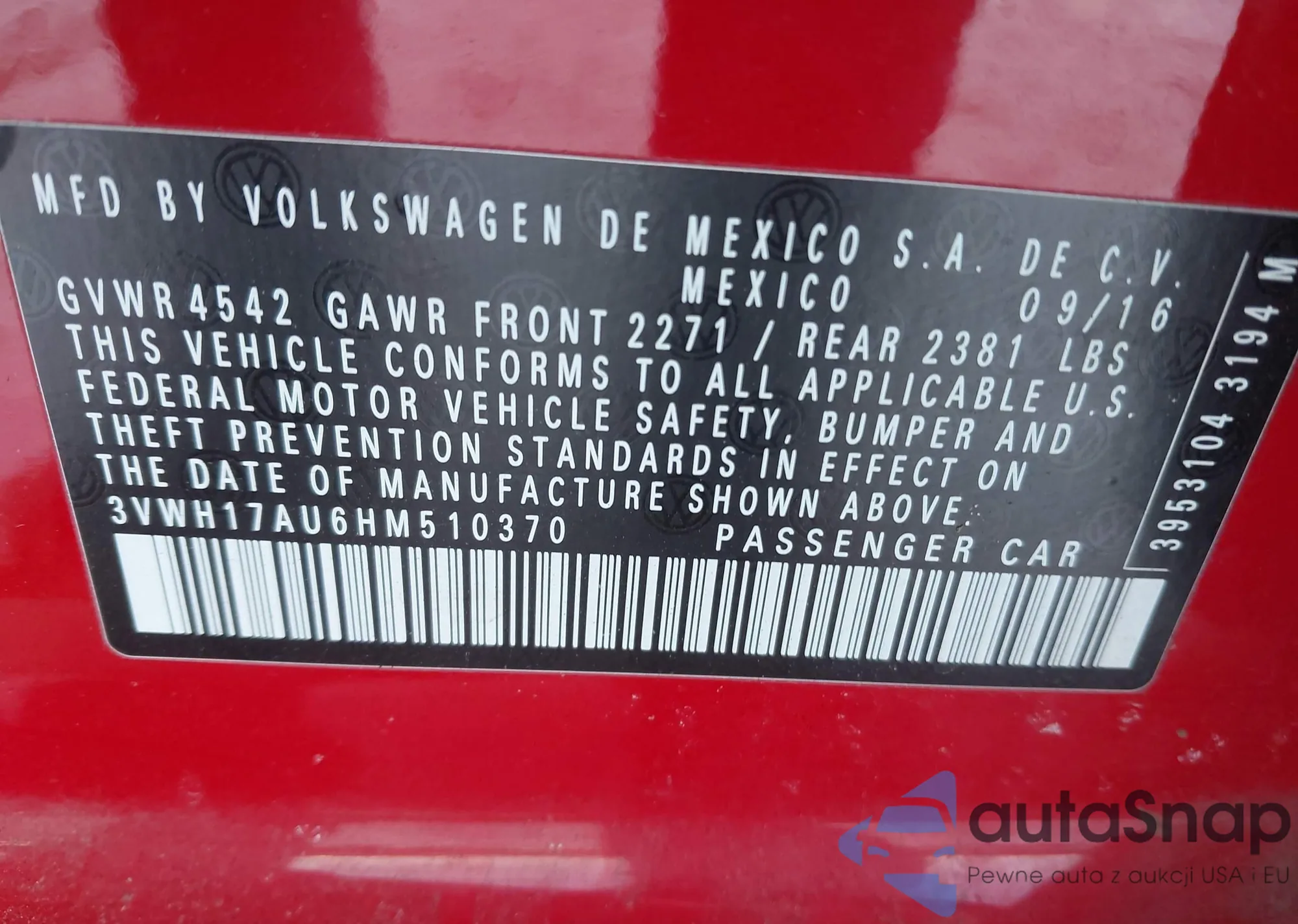 • VIN 3VWH17AU6HM510370
