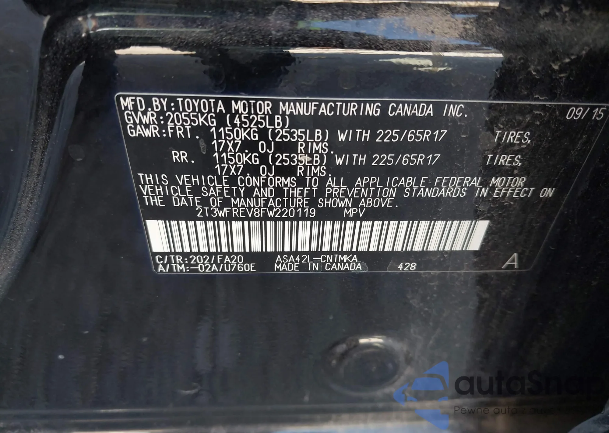 LOT: 40650334 VIN: 2T3WFREV8FW220119