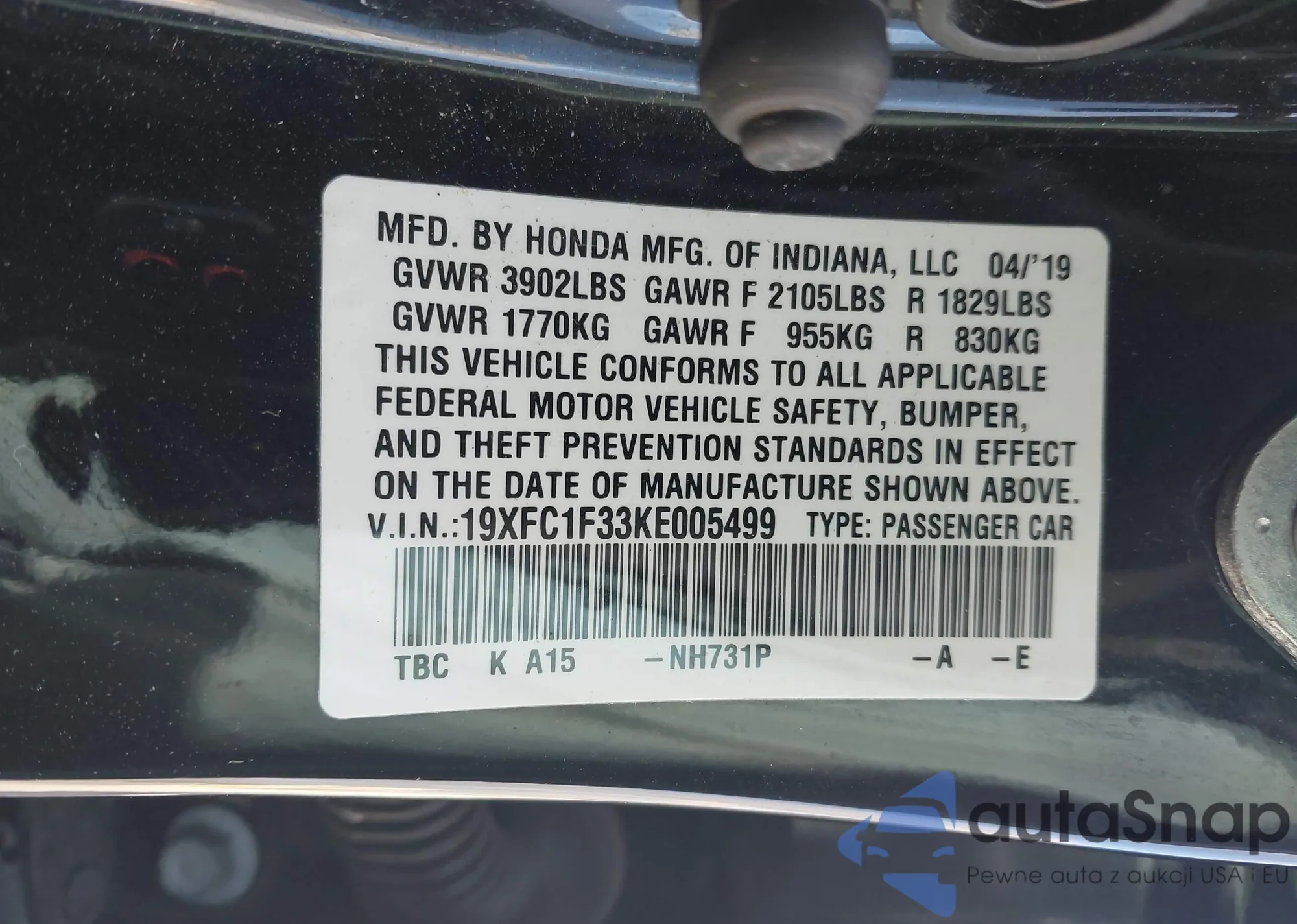 • VIN 19XFC1F33KE005499