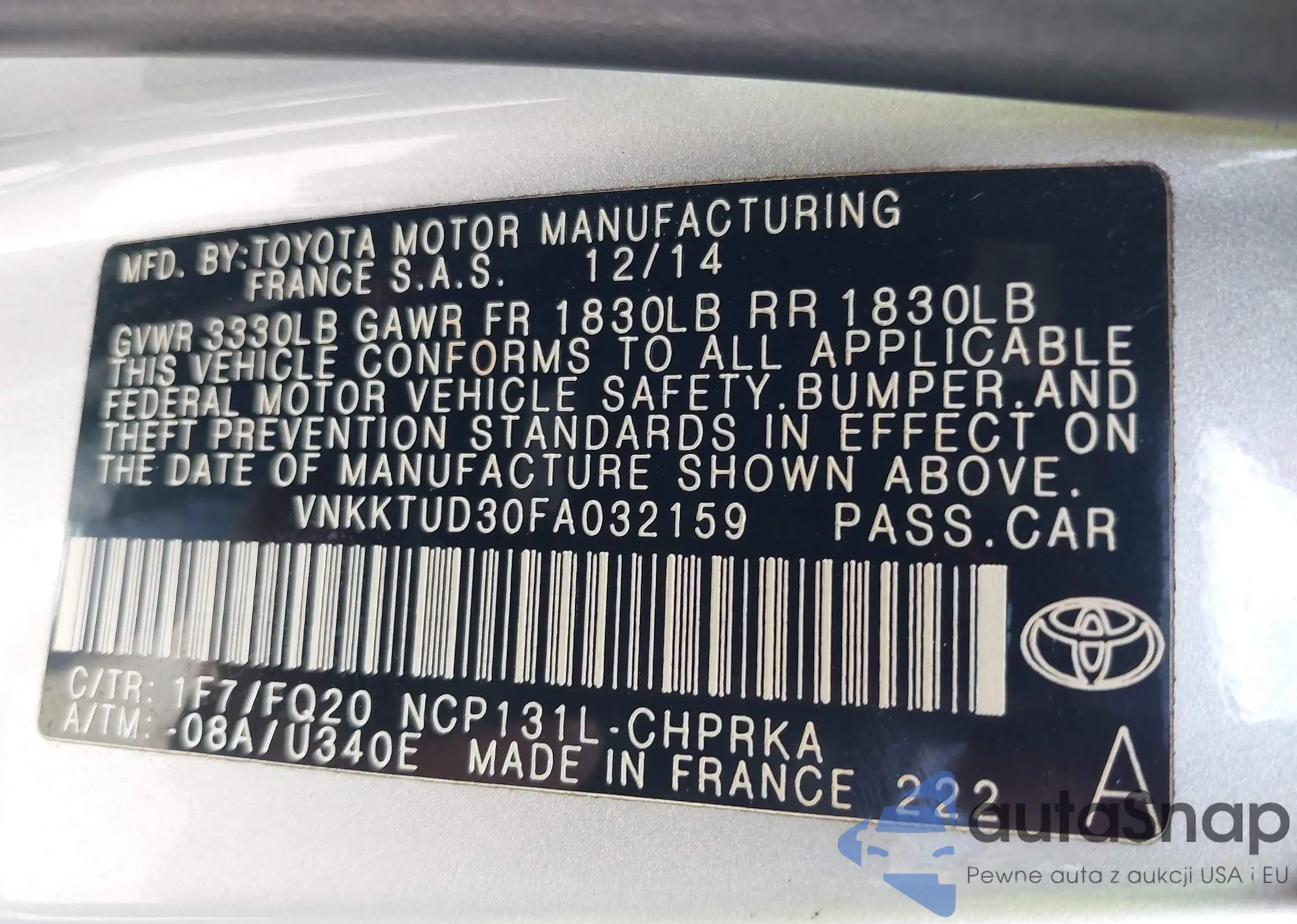 • VIN VNKKTUD30FA032159