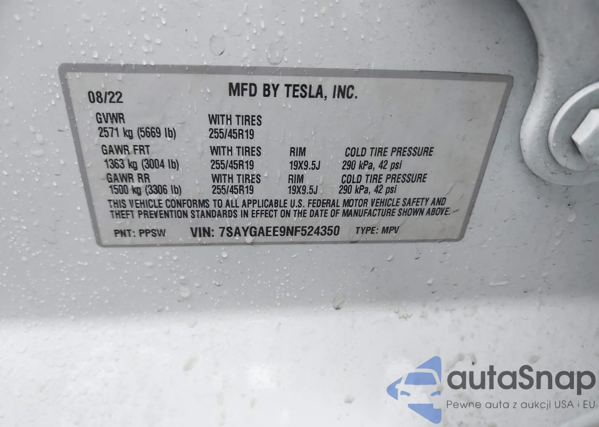 • VIN 7SAYGAEE9NF524350