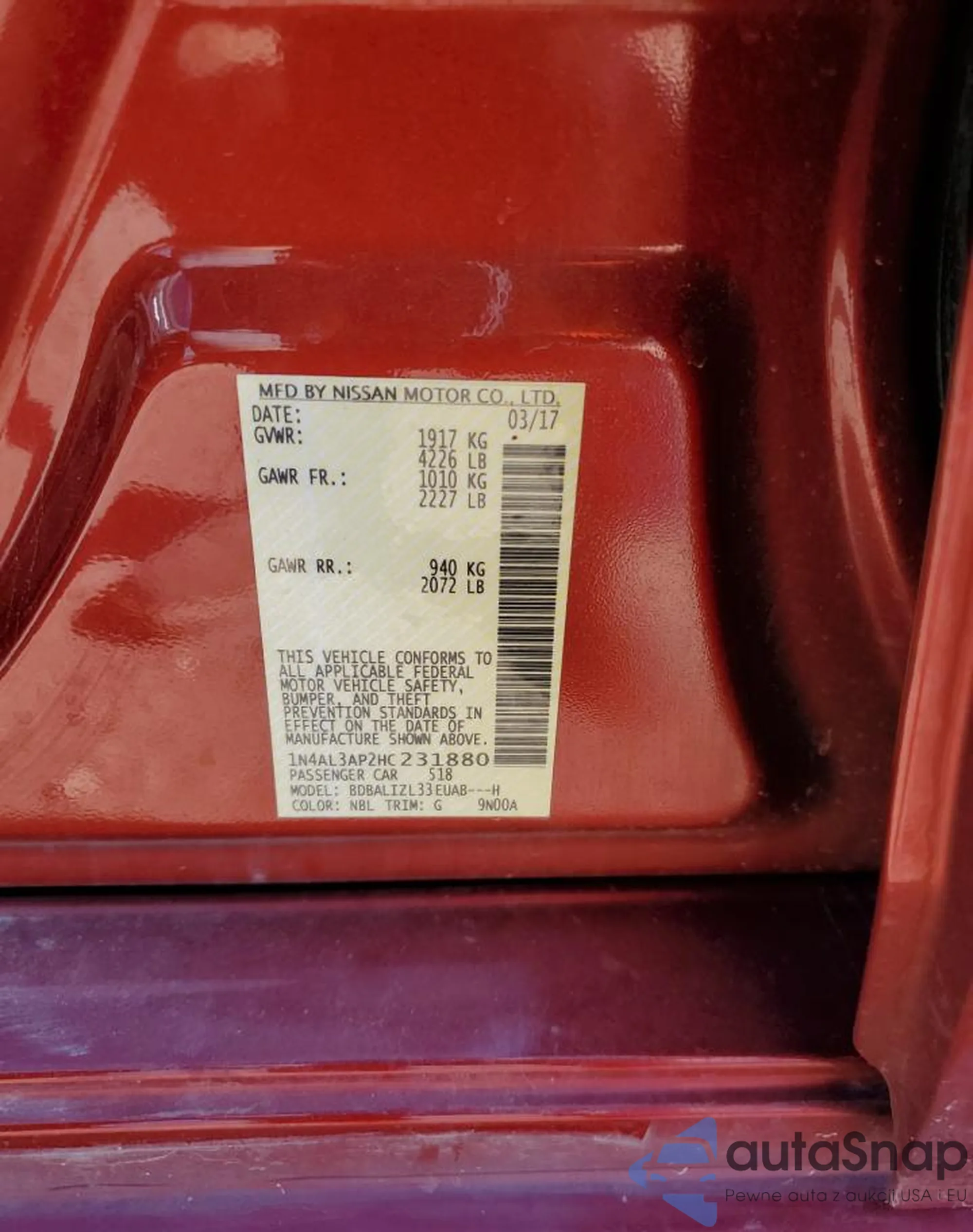 LOT: 84960964 VIN: JN1BV7ARXEM687720