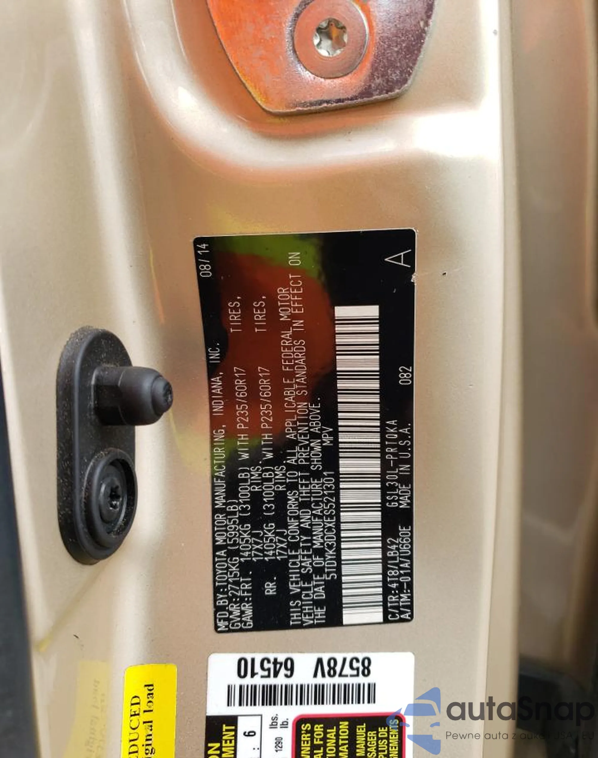 • VIN 5TDYK3DCXES521301