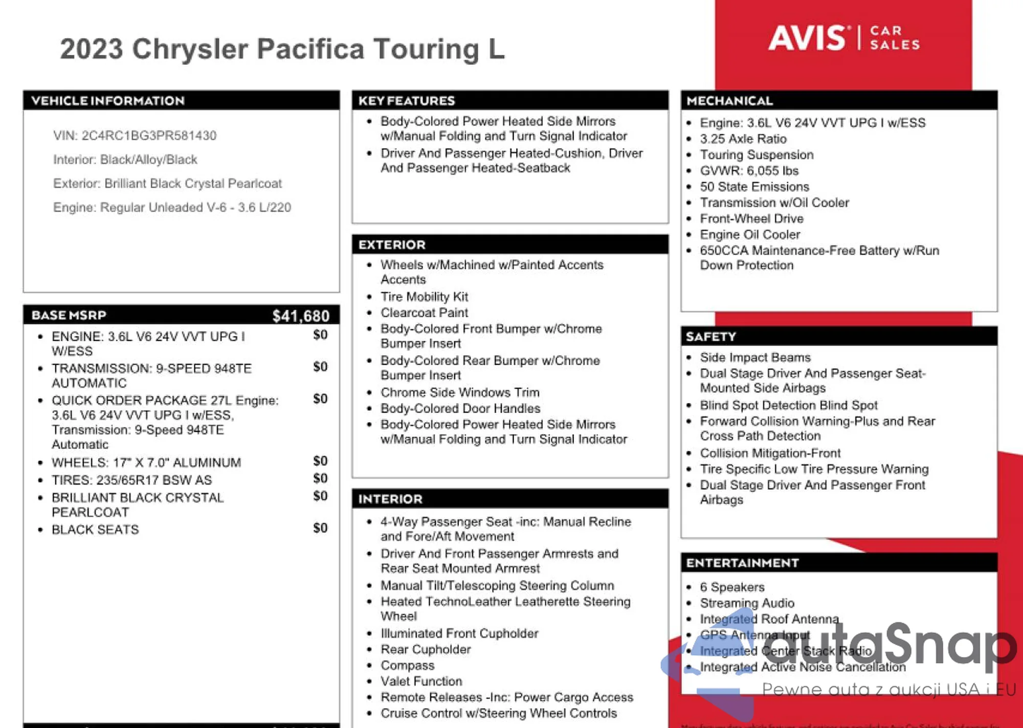• VIN 2C4RC1BG3PR581430