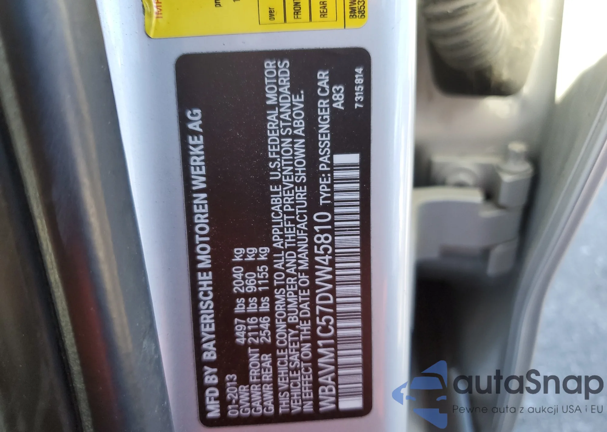 • VIN WBAVM1C57DVW45810