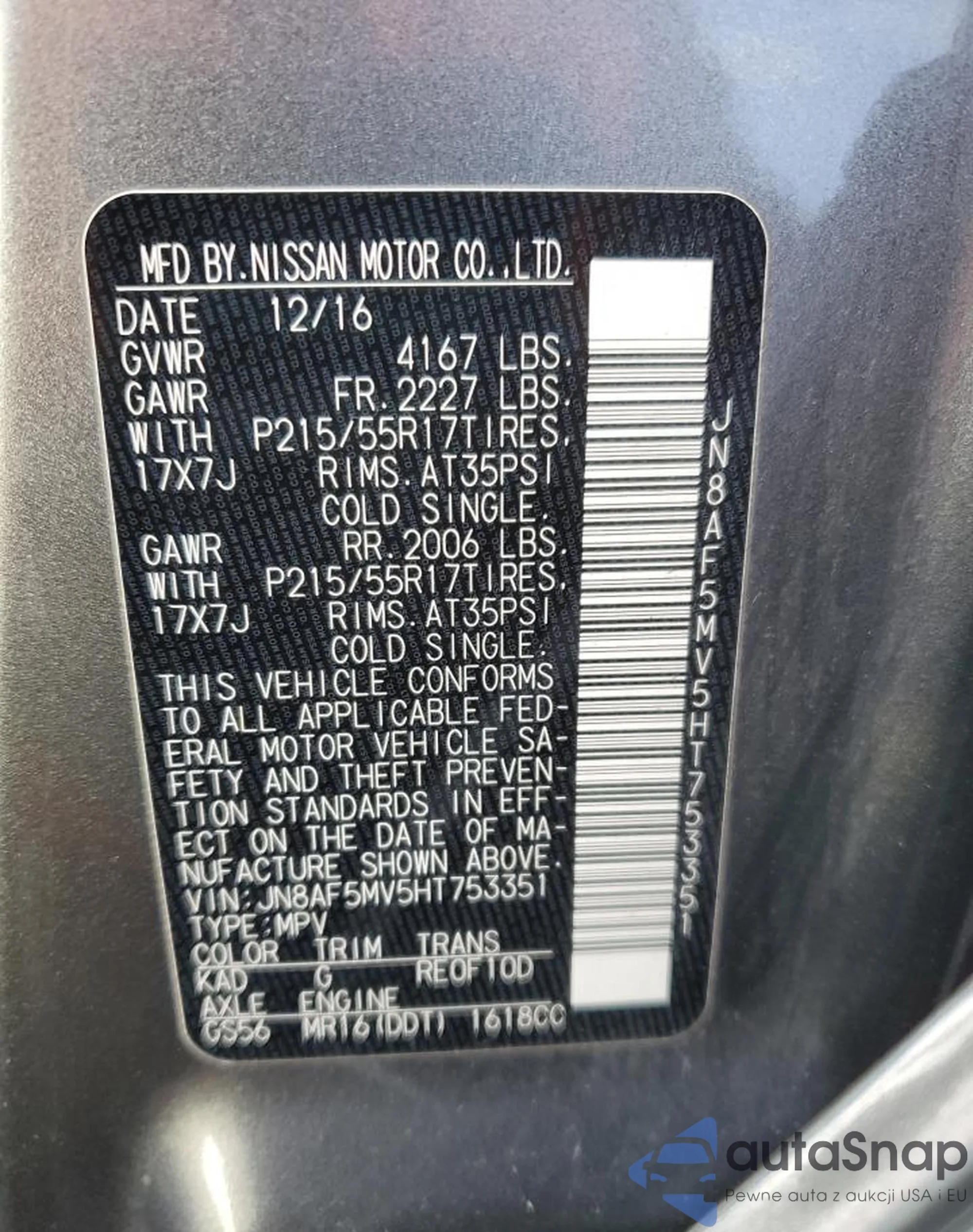 • VIN JN8AF5MV5HT753351