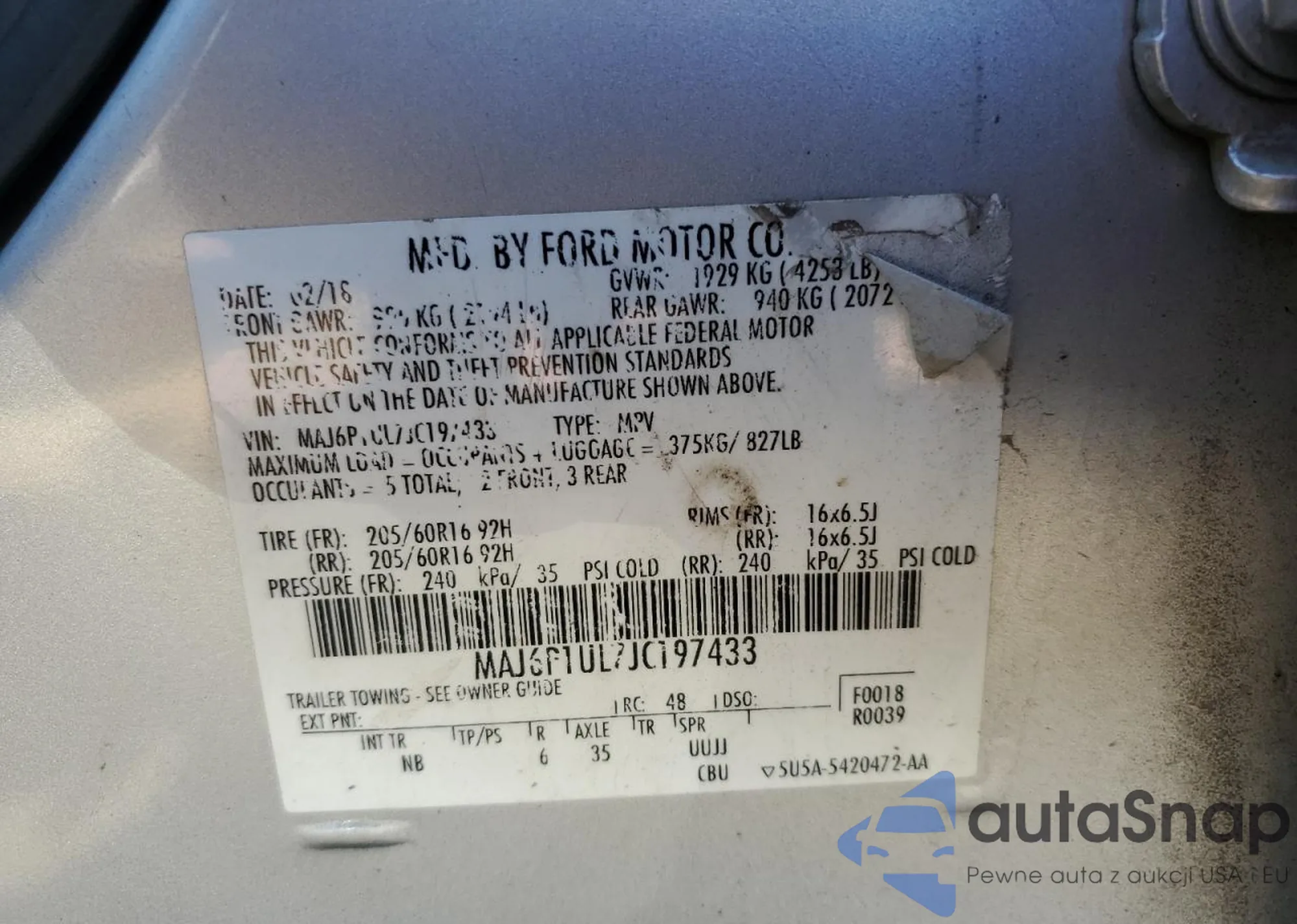 • VIN MAJ6P1UL7JC197433