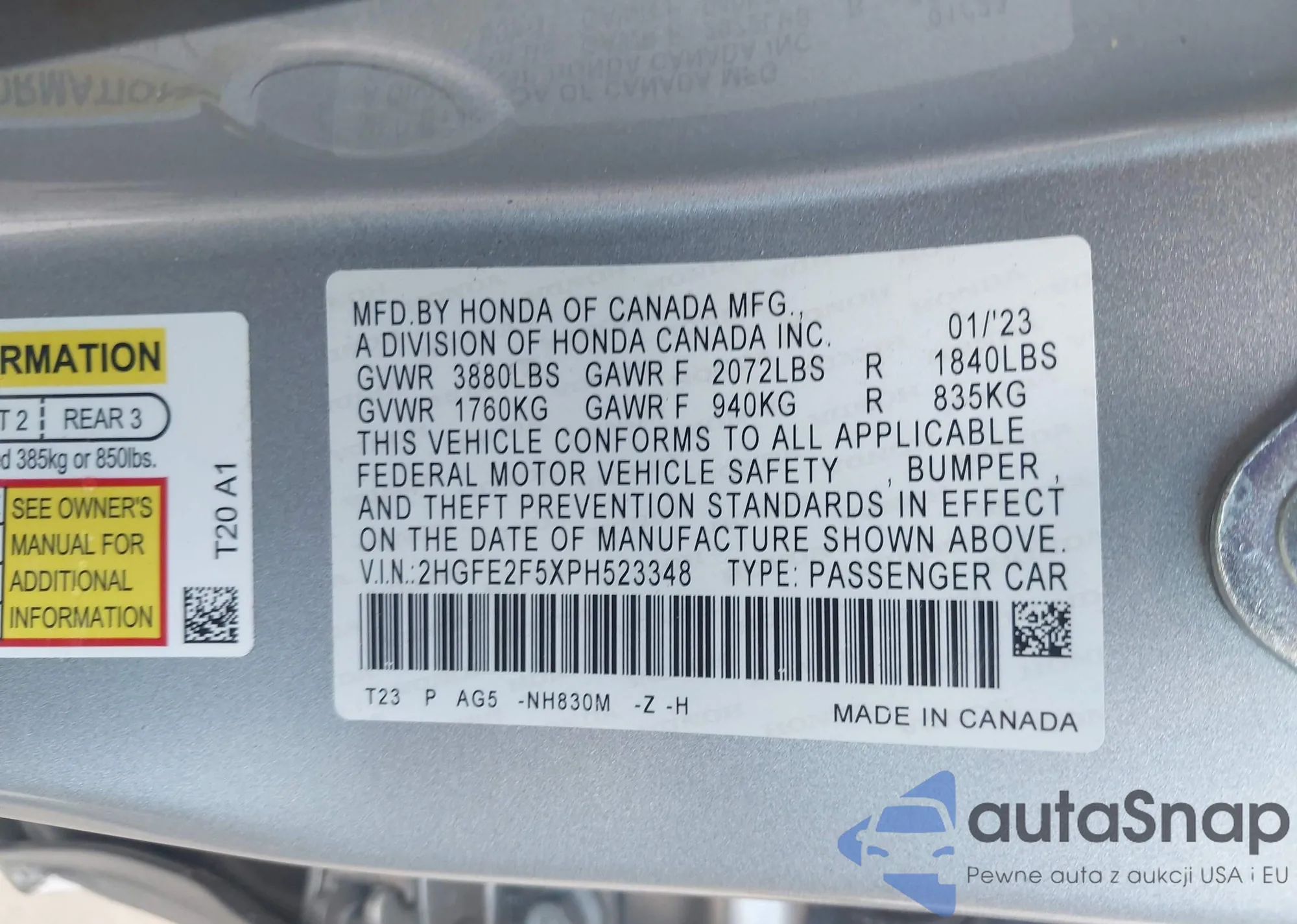 • VIN 2HGFE2F5XPH523348