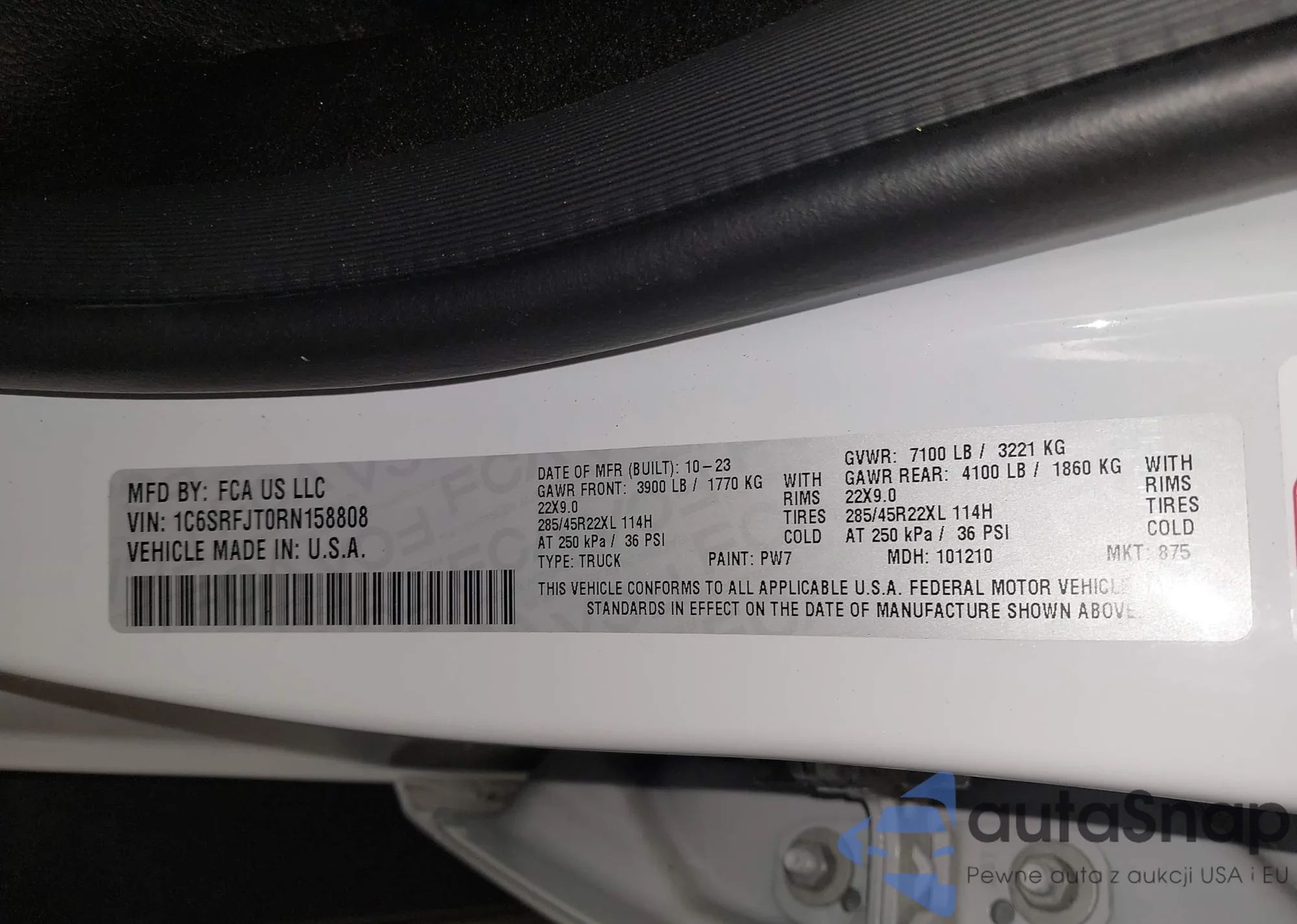 LOT: 40828280 VIN: 1C6SRFJT0RN158808