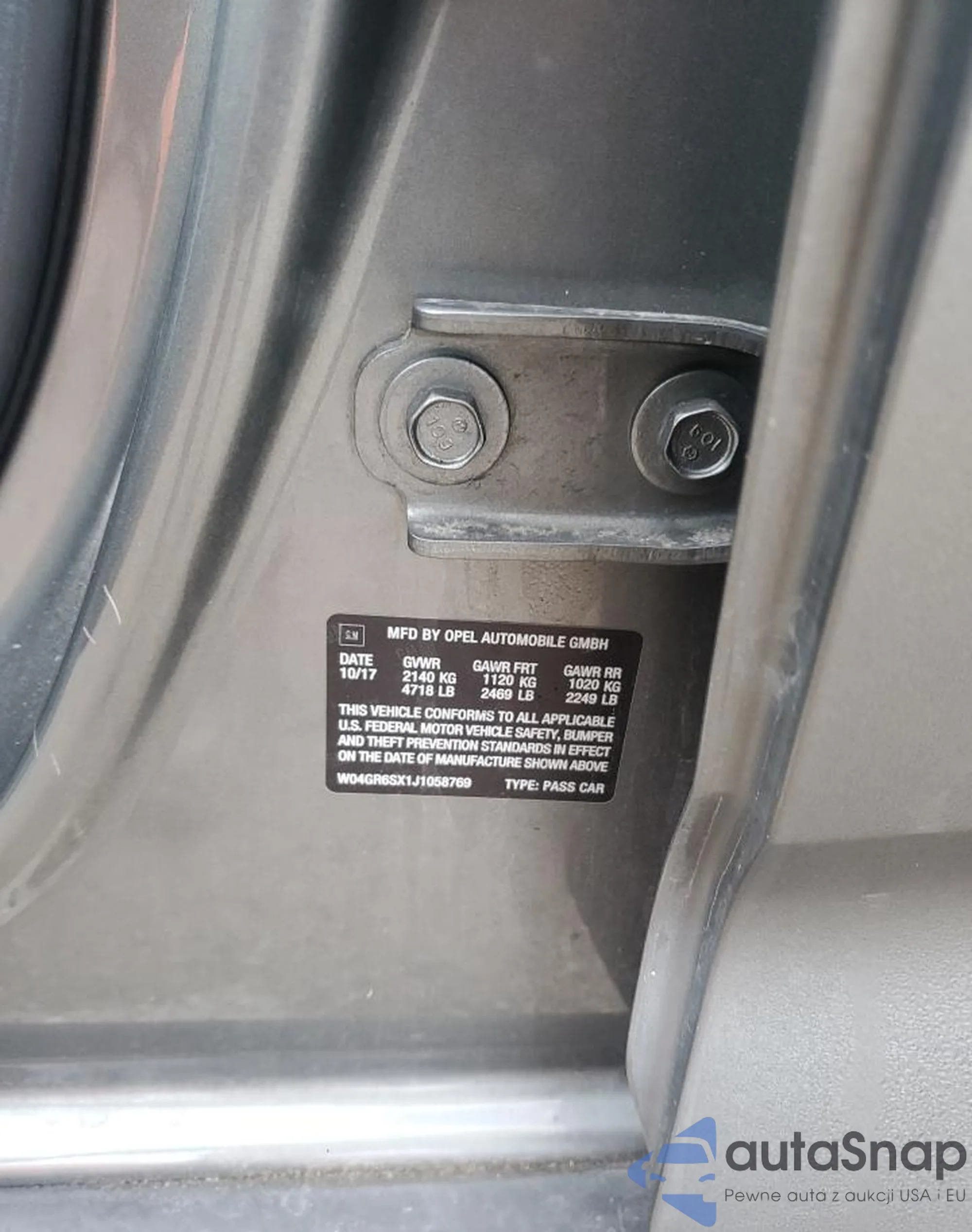 • VIN W04GR6SX1J1058769