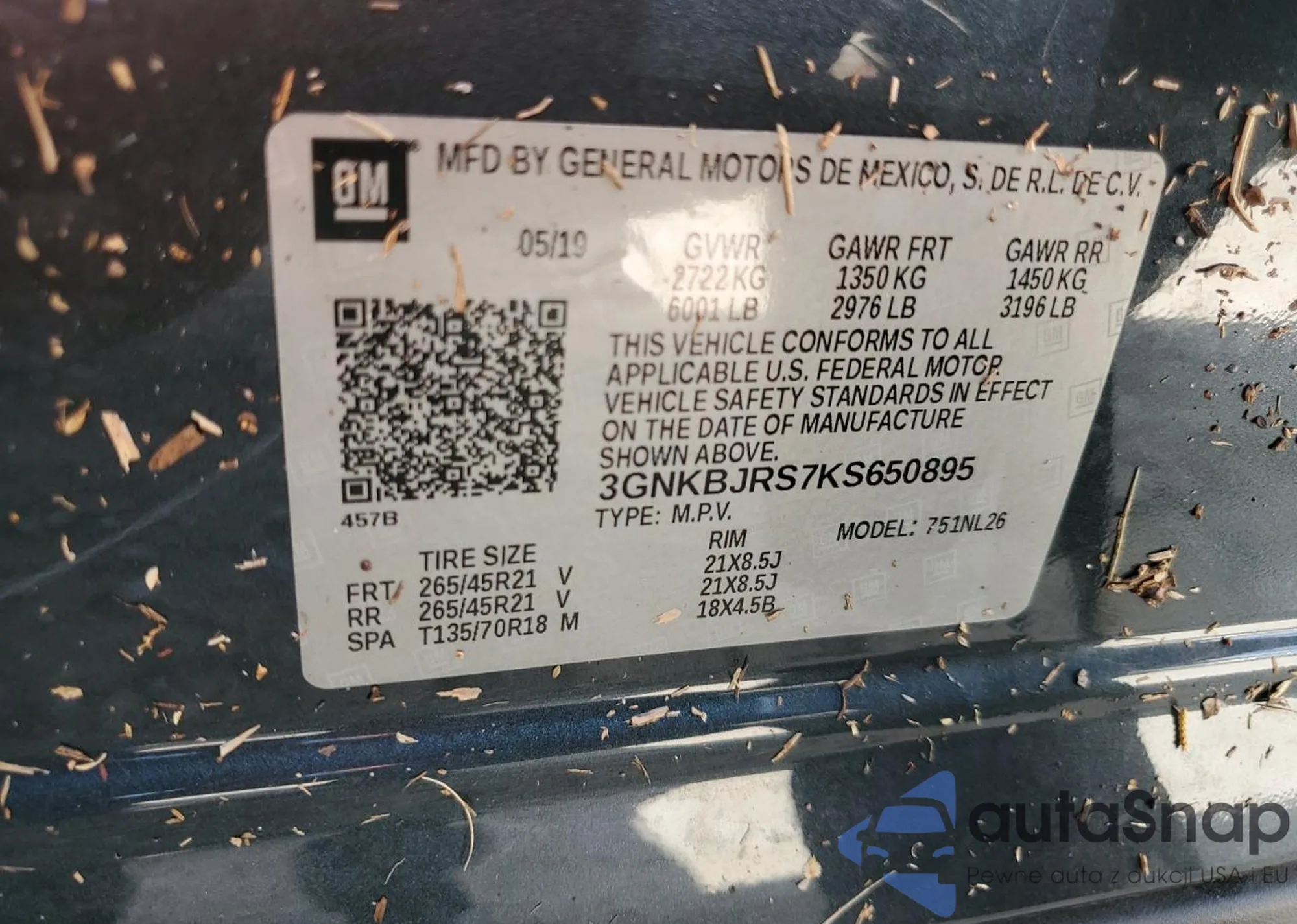 LOT: 79089224 VIN: 3GNKBJRS7KS650895