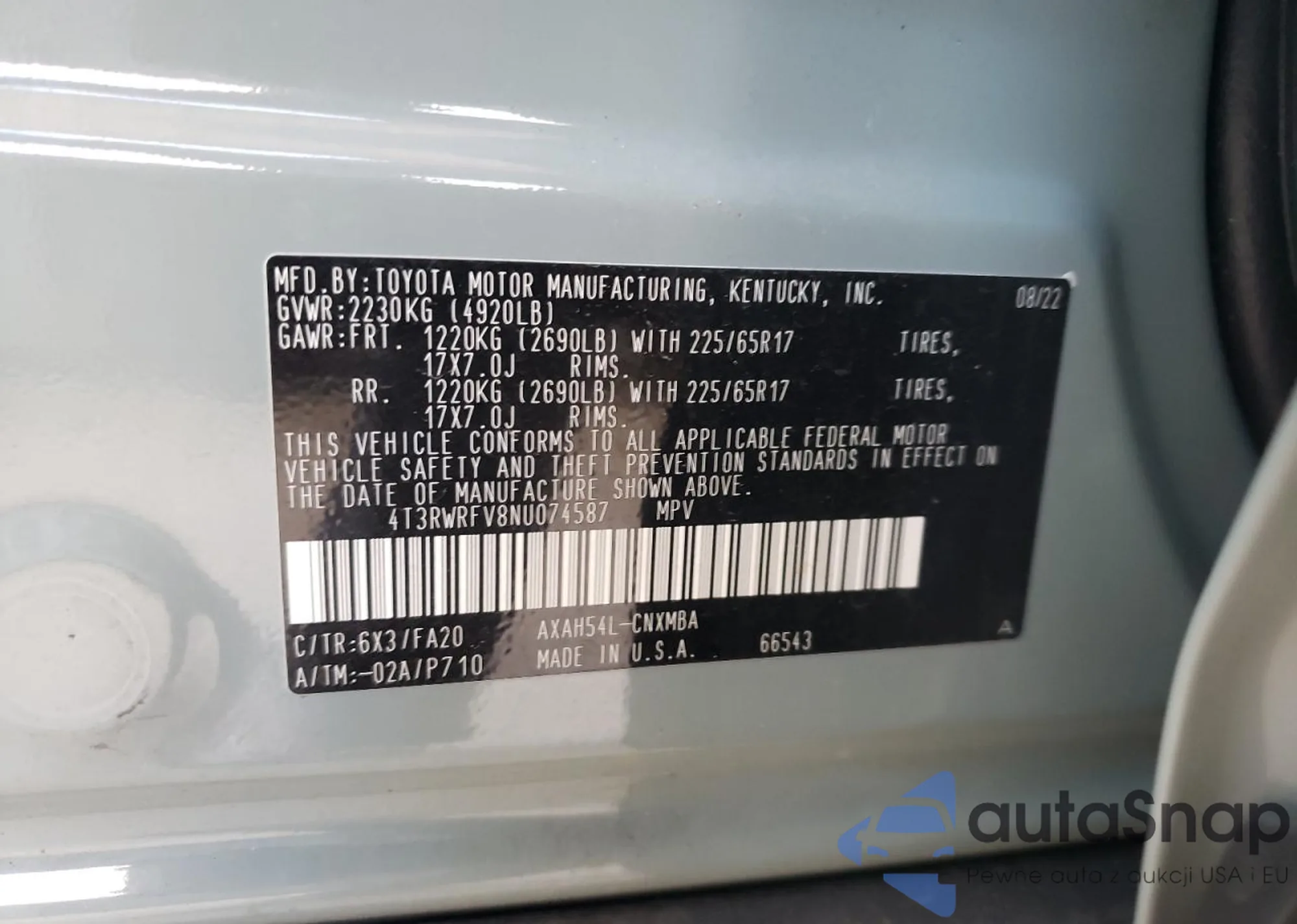 • VIN 4T3RWRFV8NU074587