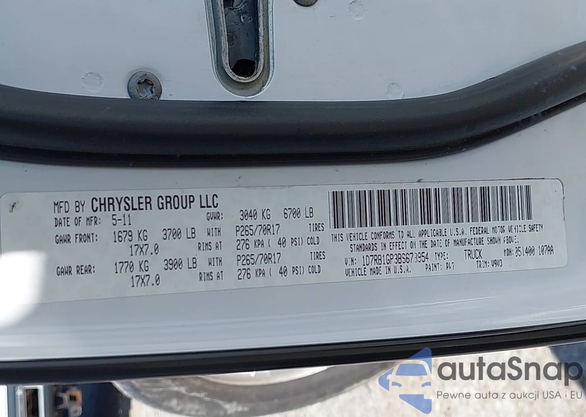 LOT: 39588929 VIN: 1D7RB1GP3BS673954