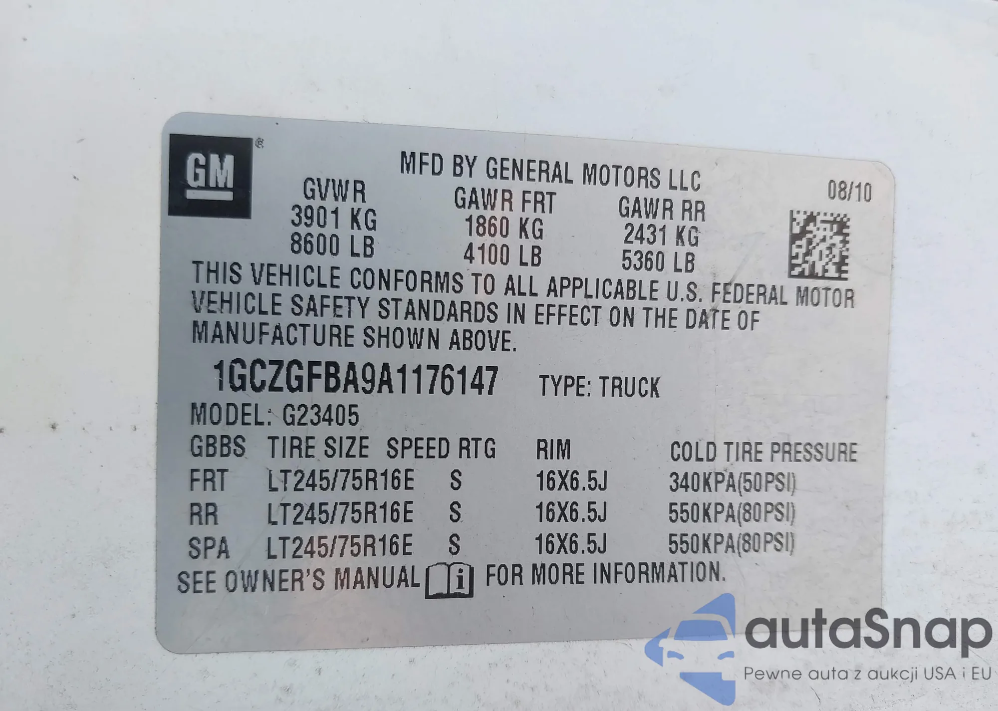 • VIN 1GCZGFBA9A1176147