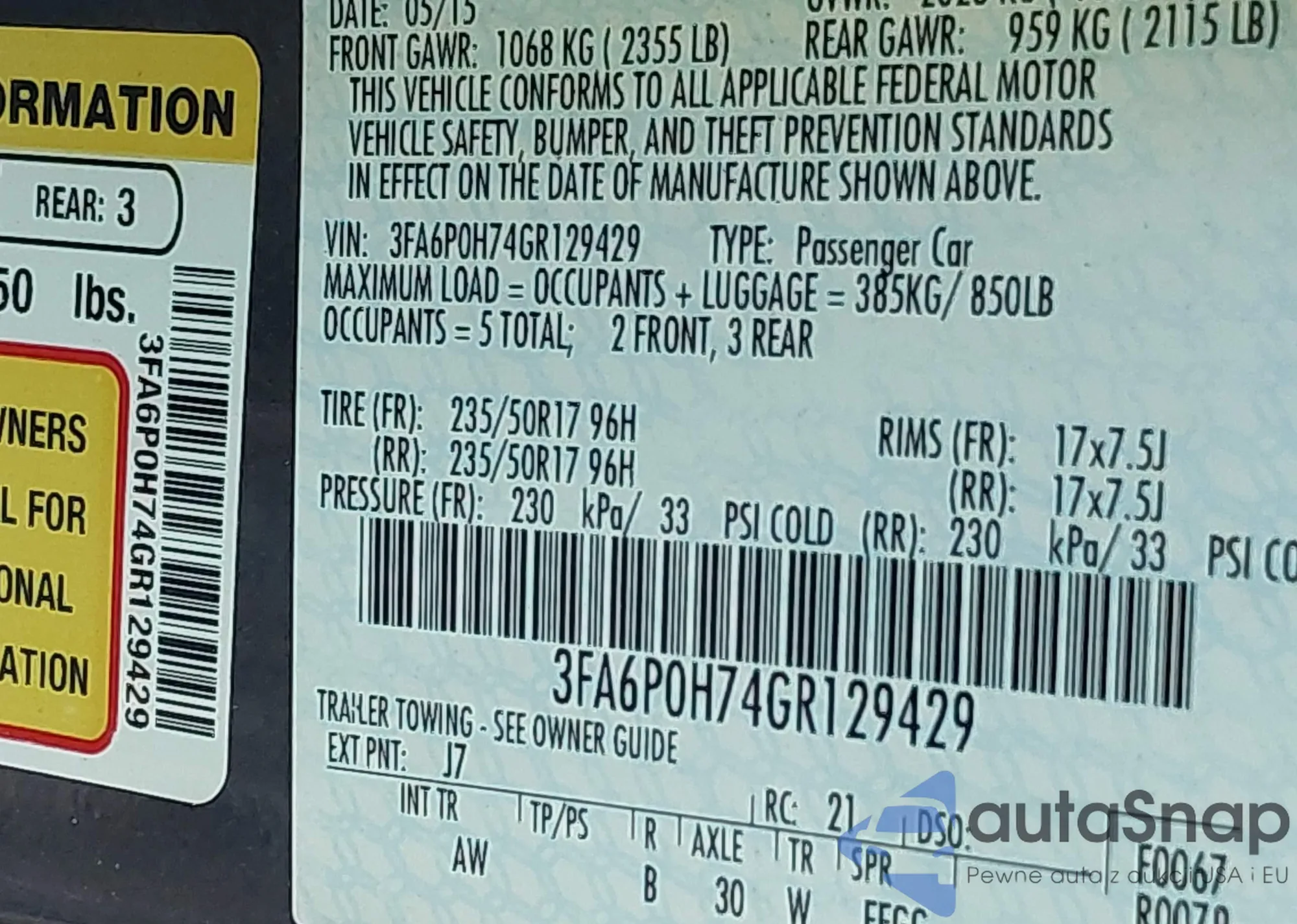 • VIN 3FA6P0H74GR129429